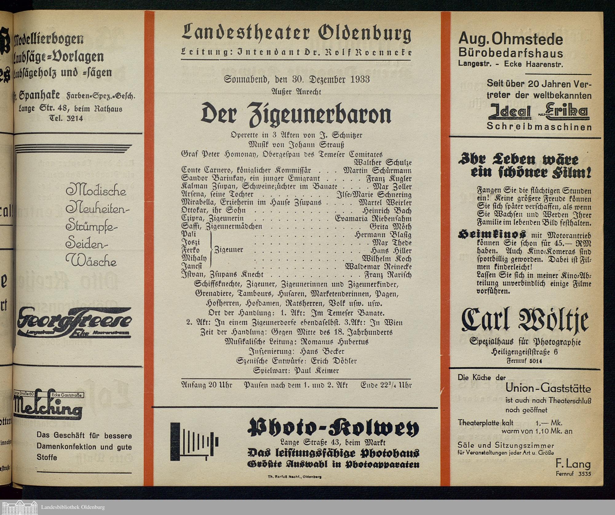 30.12.1933 - Ignaz Schmidt: Der Zigeunerbaron.