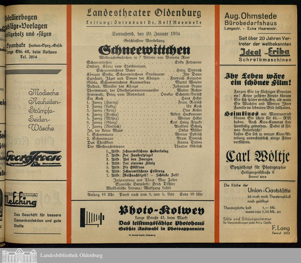 20.01.1934 - Victoria Roer: Schneewittchen.