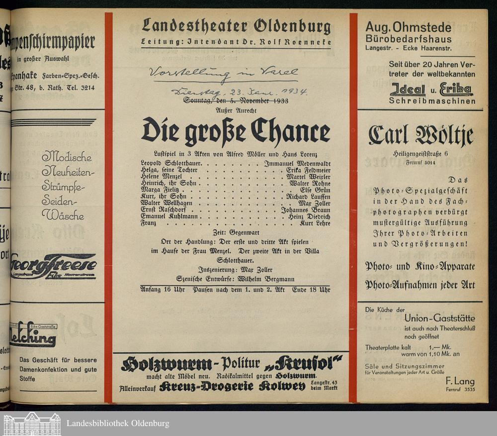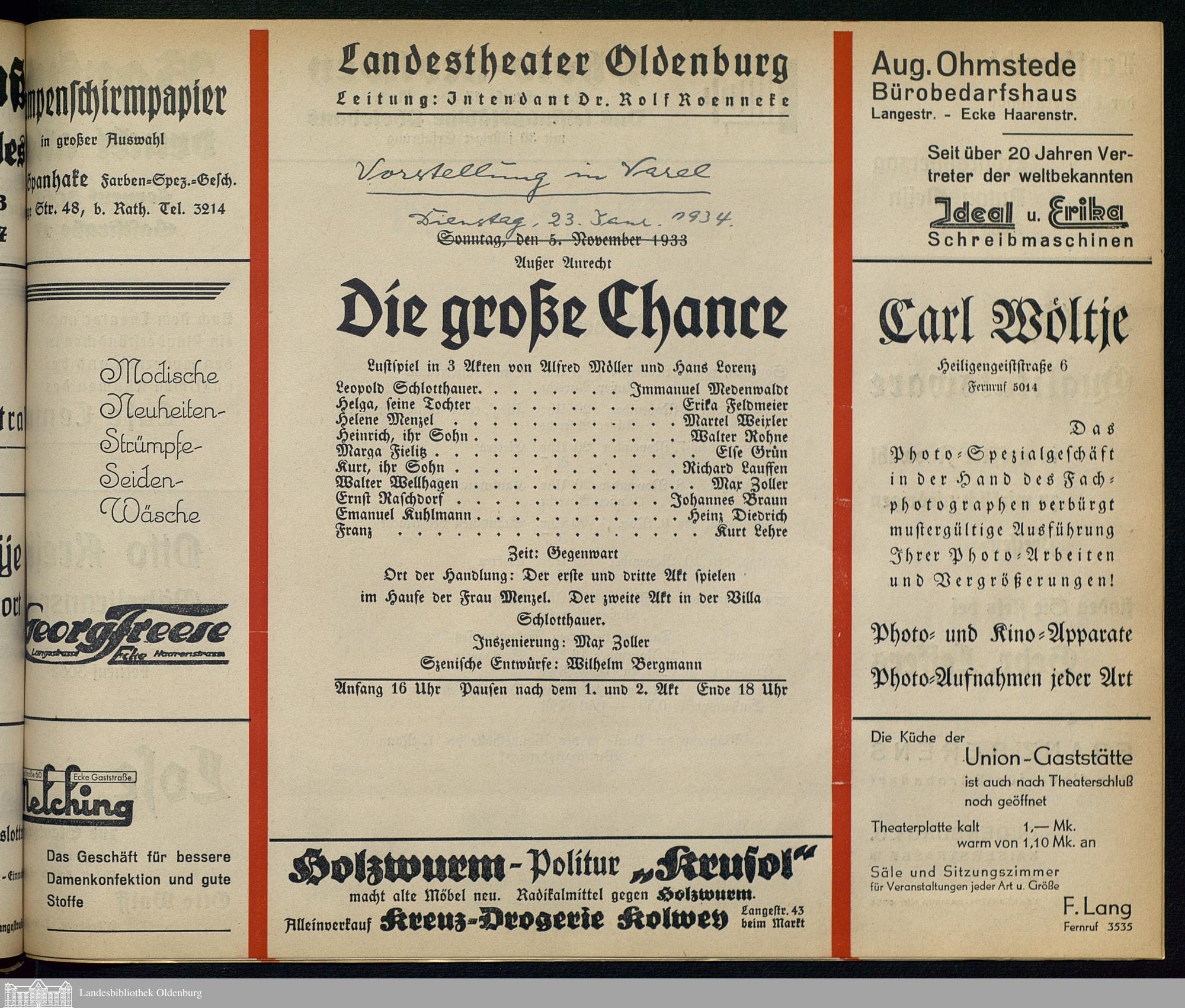 23.01.1934 - Alfred Möller und Hans Lorenz: Die große Chance. [Gastspiel in Vare...