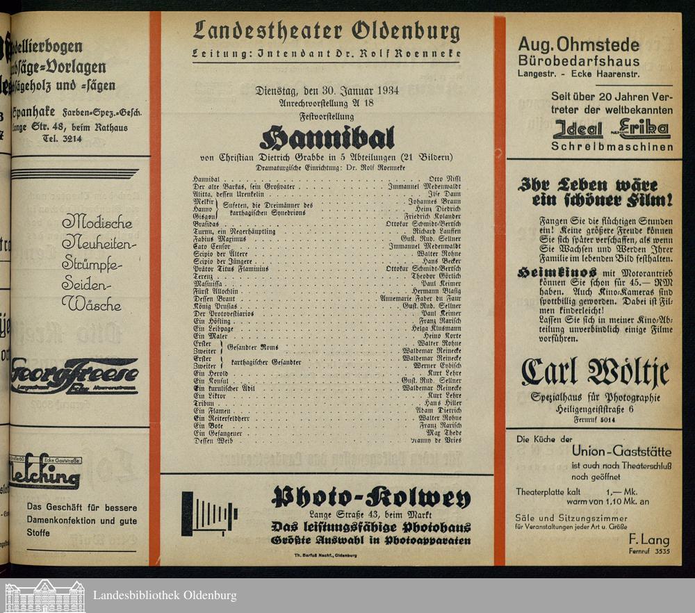 30.01.1934 - Christian Dietrich Grabbe: Hannibal.