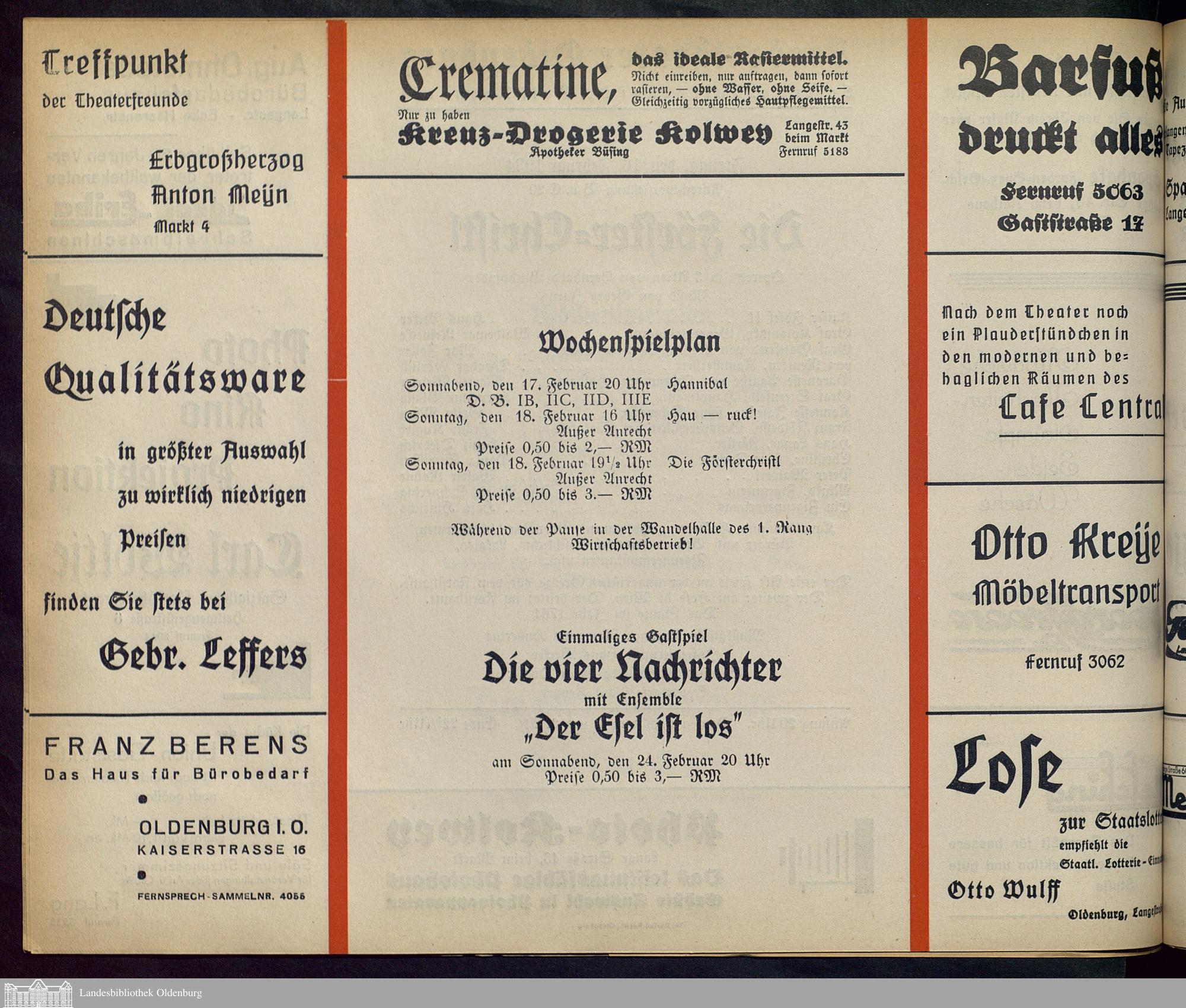 16.02.1934 - Bernhard Buchbinder: Die Förster-Christl.