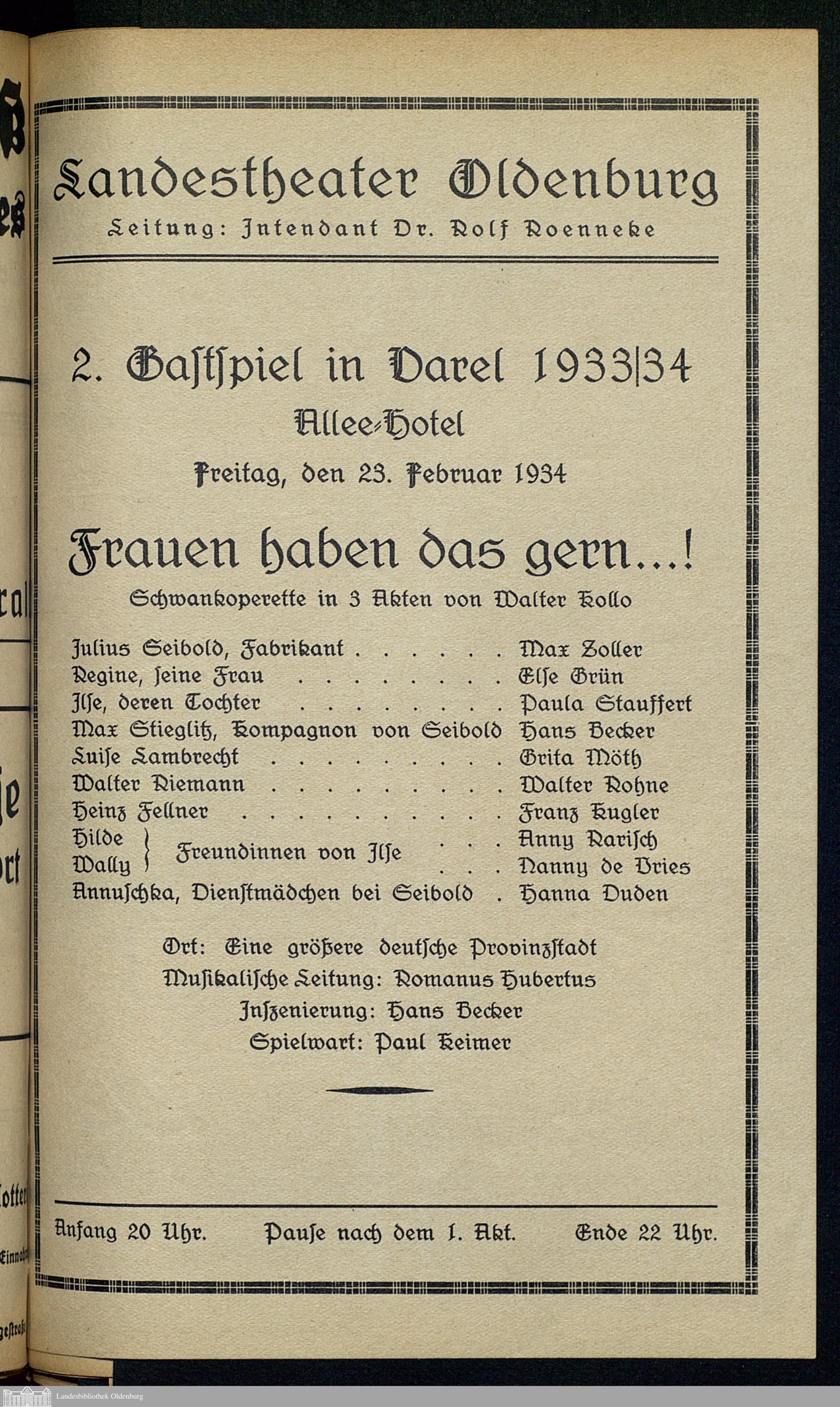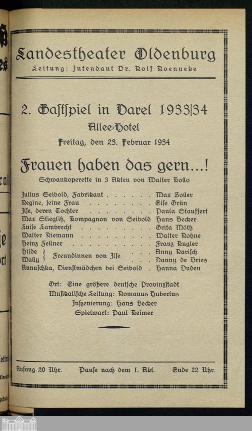 23.02.1934 - Walter Kollo [Walter Kollodzieski]: Frauen haben das gern...! [Gastspiel...