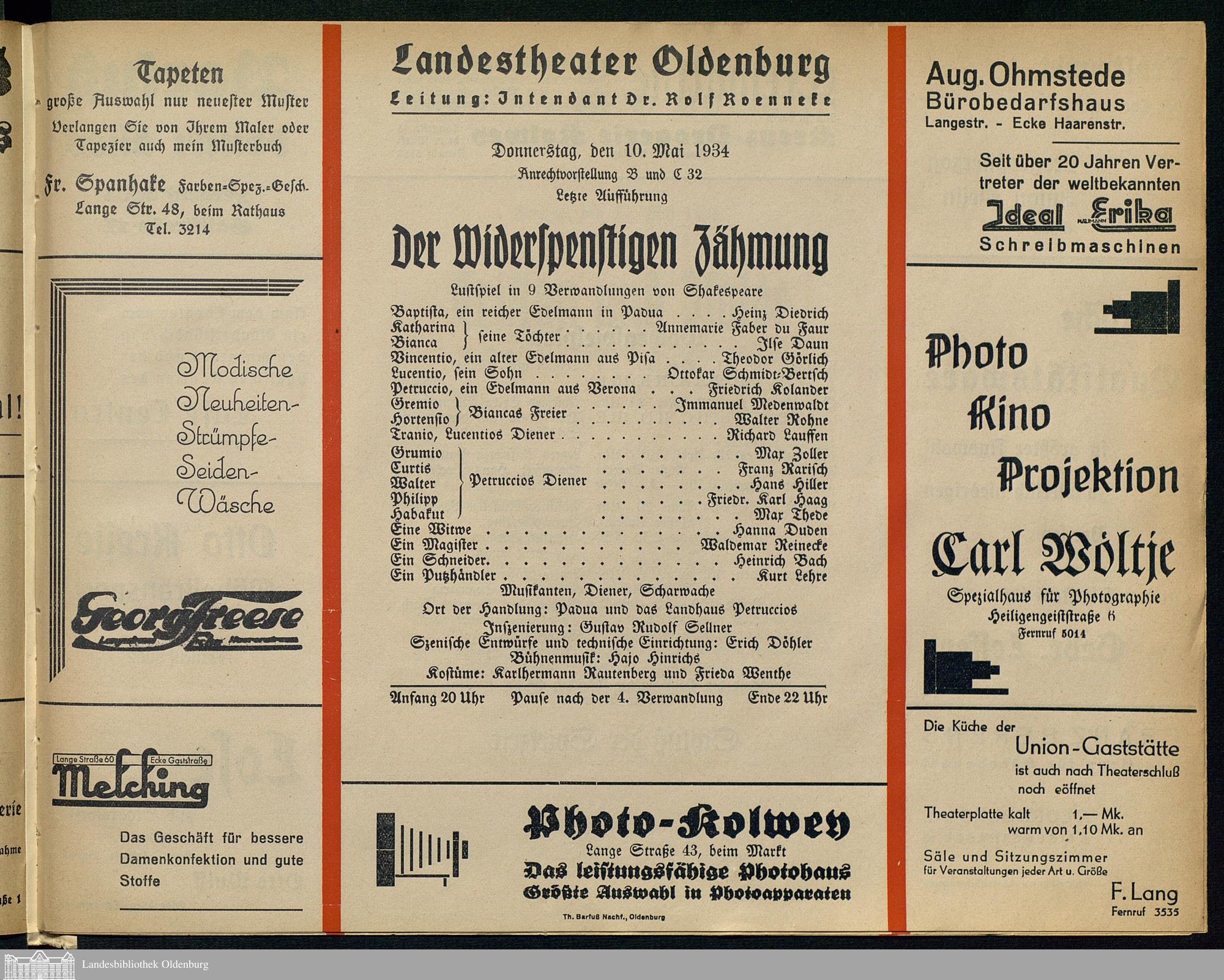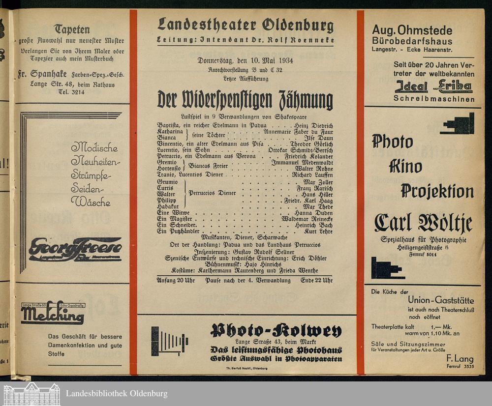 10.05.1934 - William Shakespeare: Der Widerspenstigen Zähmung.