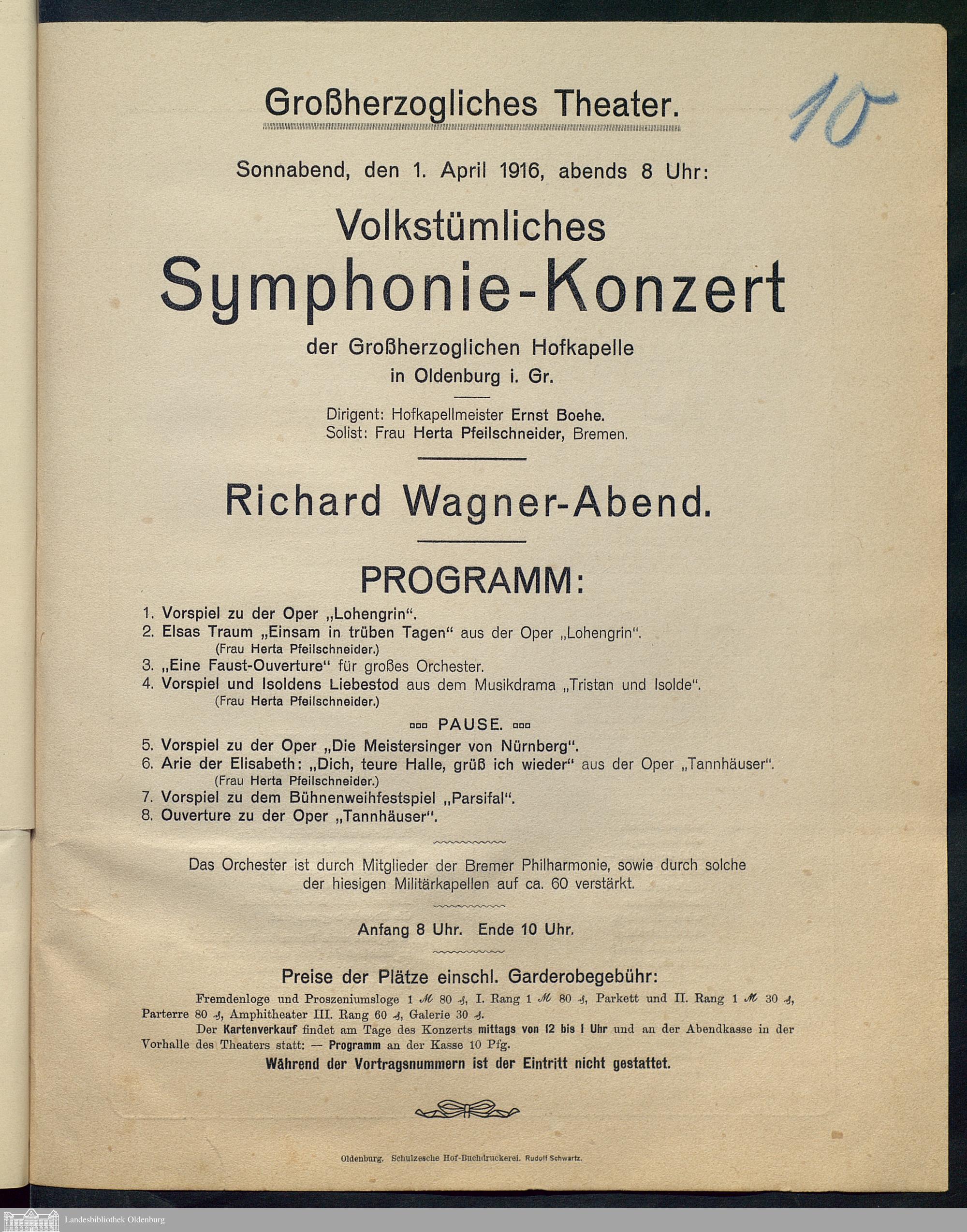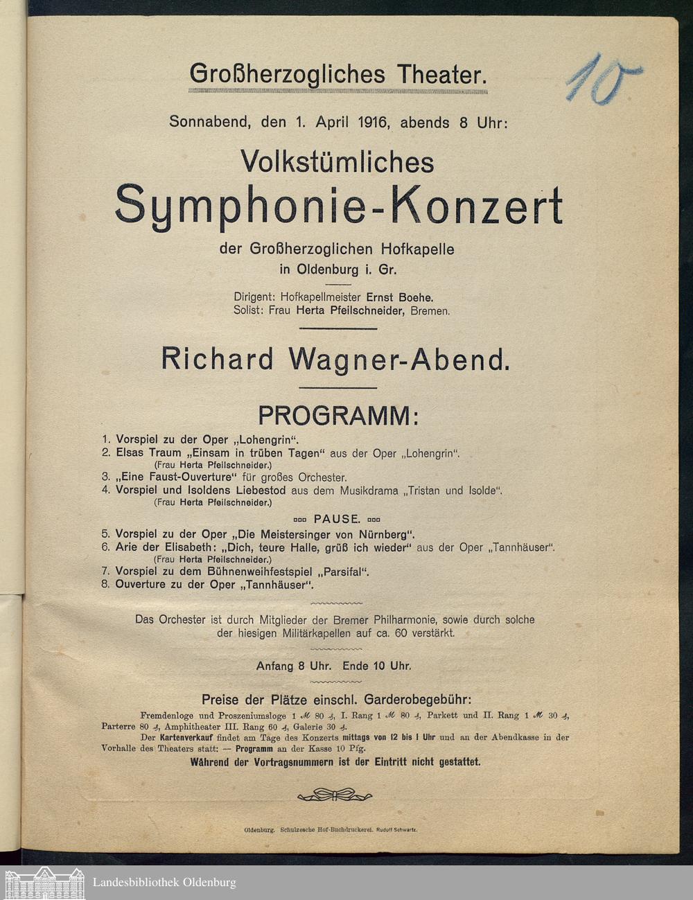 01.04.1916 - Volkstümliches Symphonie-Konzert, der Großherzoglichen Hofkapelle in...