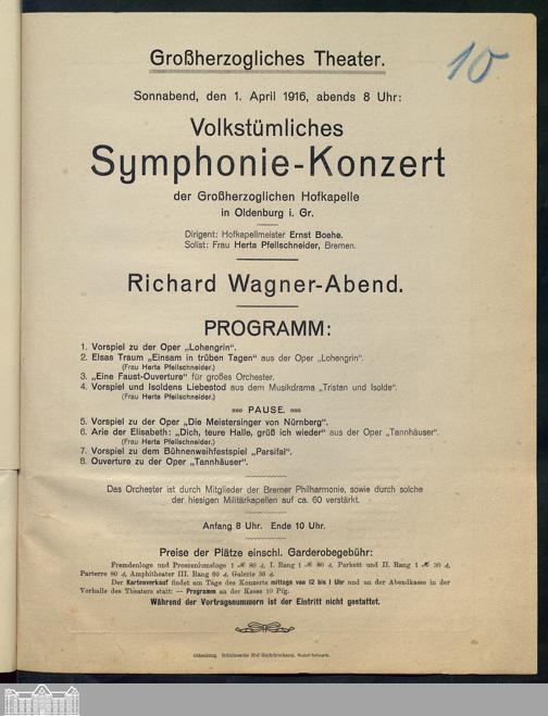 [Konzert-Programme des Oldenburger Hoftheaters und ähnlicher Oldenburger Veranst...