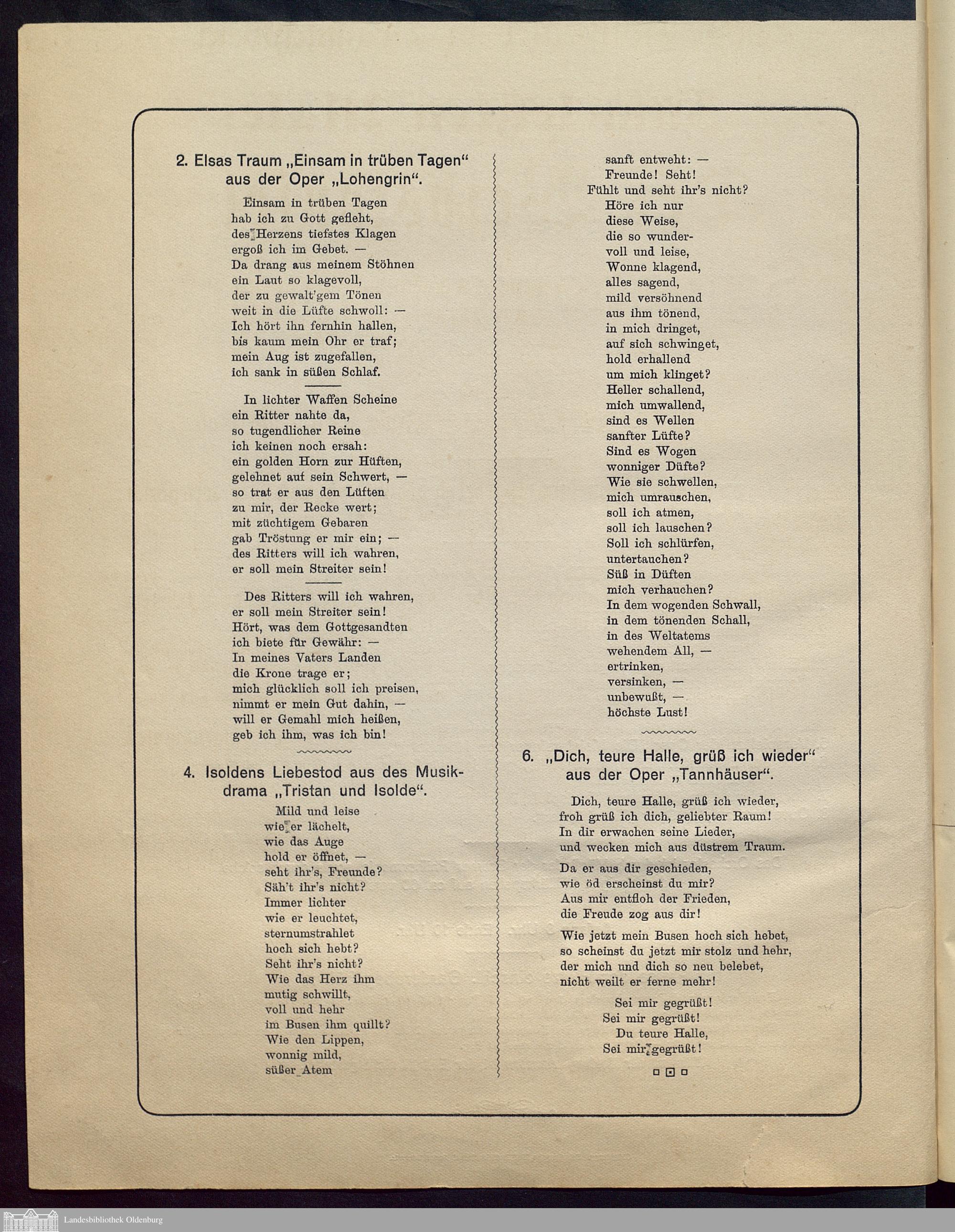[Konzert-Programme des Oldenburger Hoftheaters und ähnlicher Oldenburger Veranst...