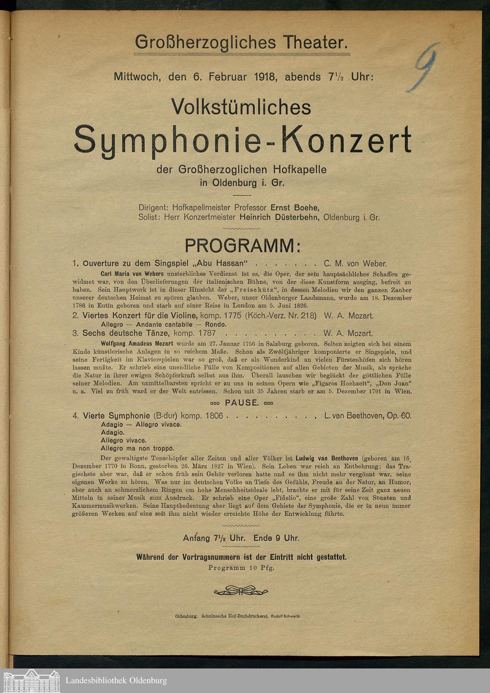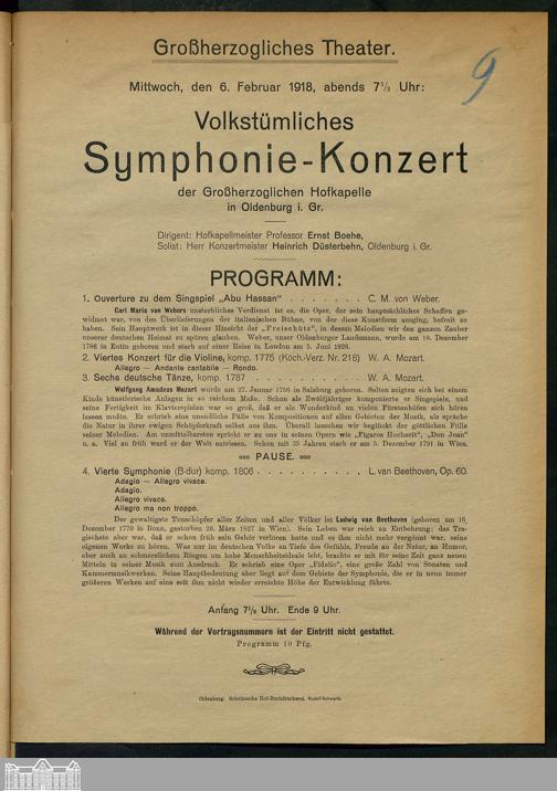 06.02.1918 - Volkstümliches Symphonie-Konzert, der Großherzoglichen Hofkapelle, in...