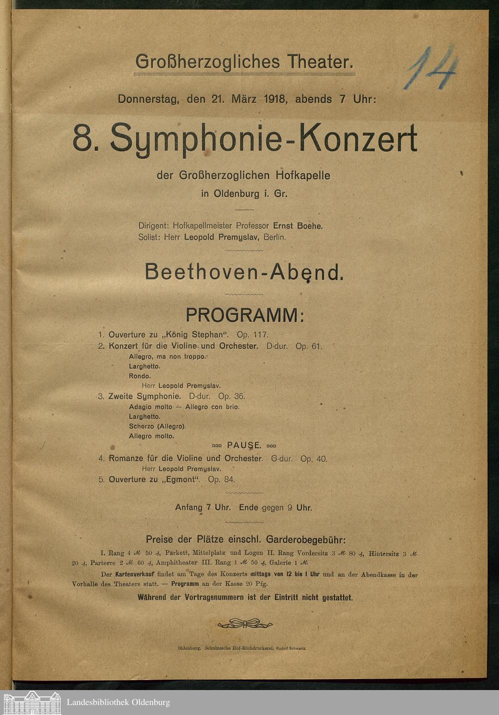 21.03.1918 - 8. Symphonie-Konzert, der Großherzoglichen Hofkapelle, in Oldenburg...