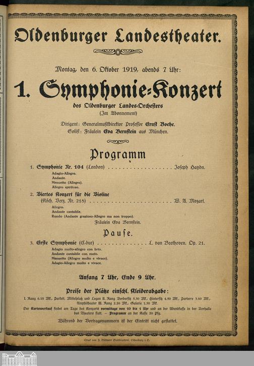 06.10.1919 - 1. Symphonie-Konzert, des Oldenburger Landes-Orchesters, (im Abonnement),...