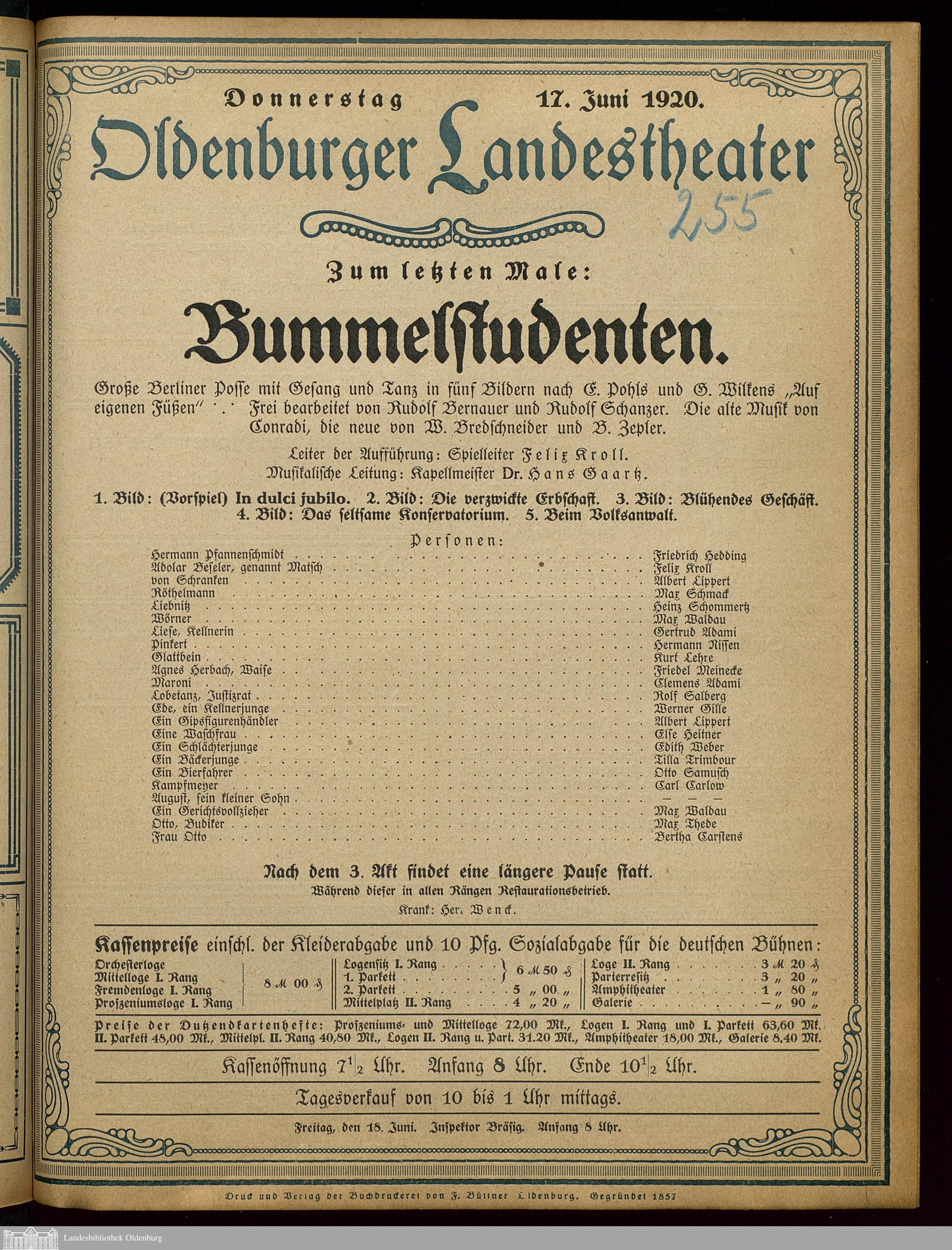 17.06.1920 - Emil Pohl und Heinrich Wilken / Rudolf Bernauer und Rudolph Schanzer...