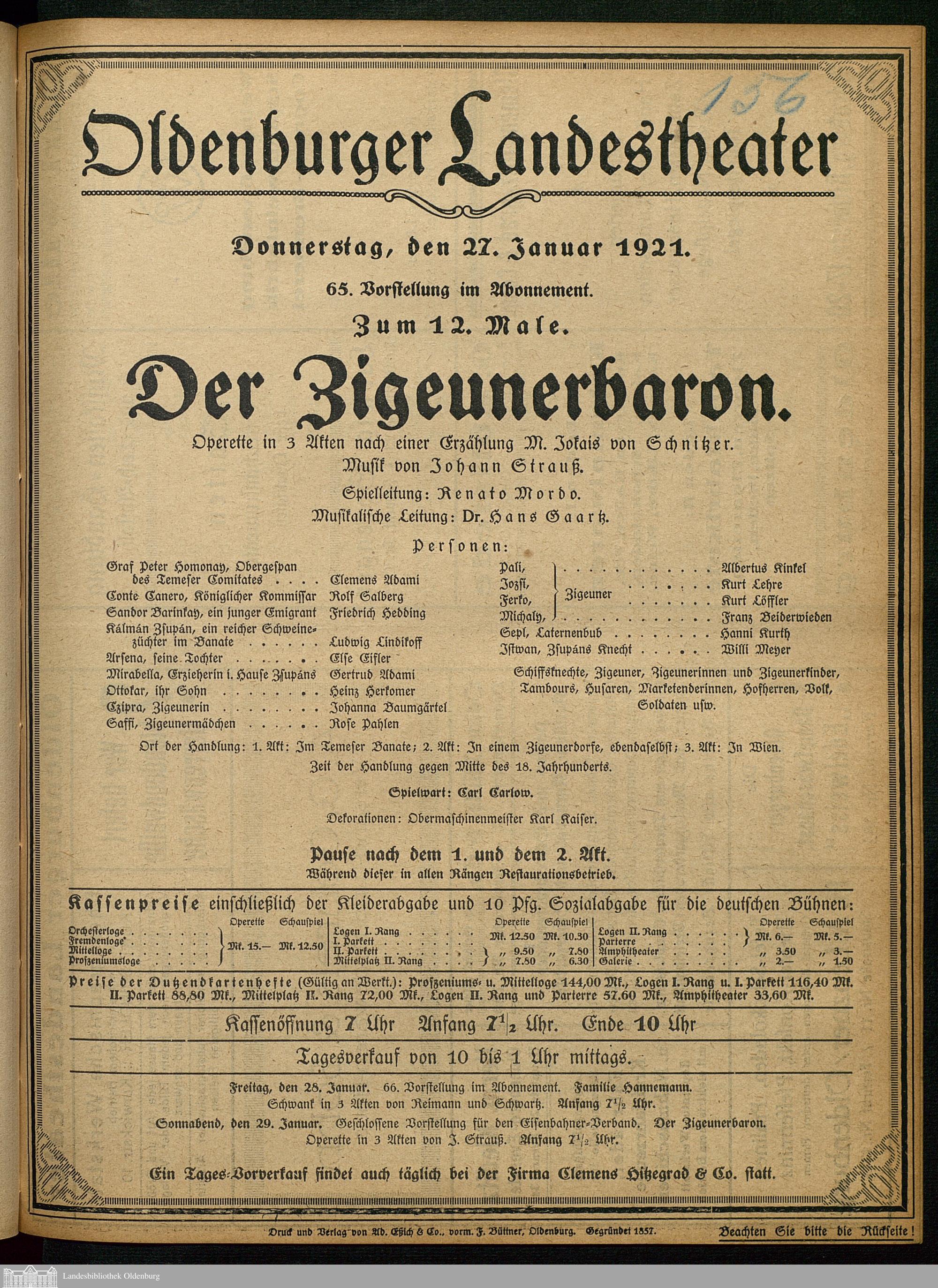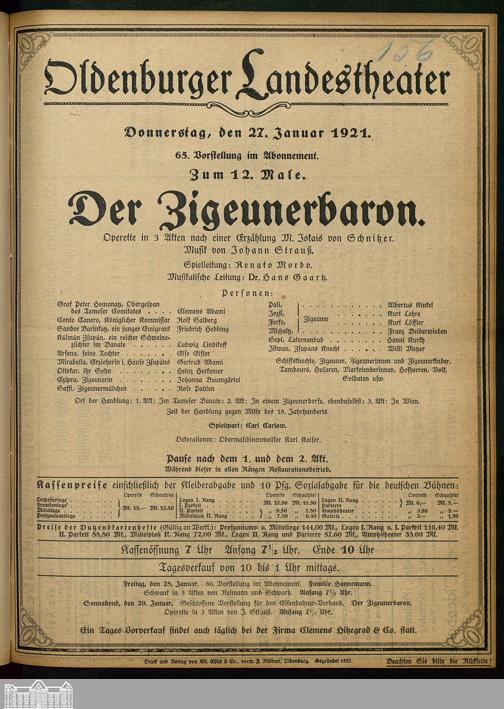 27.01.1921 - Mór Jókai / Ignaz Schnitzer (Bearb.): Der Zigeunerbaron.