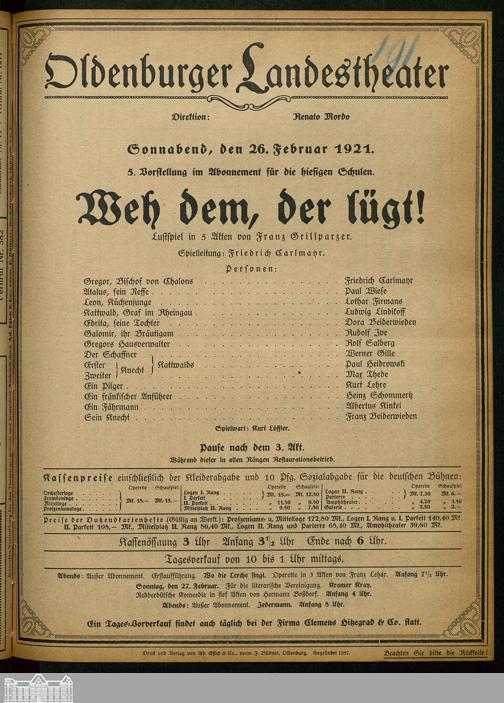26.02.1921 - Franz Grillparzer: Weh dem, der lügt!