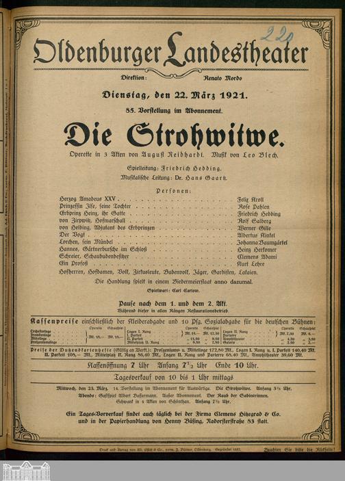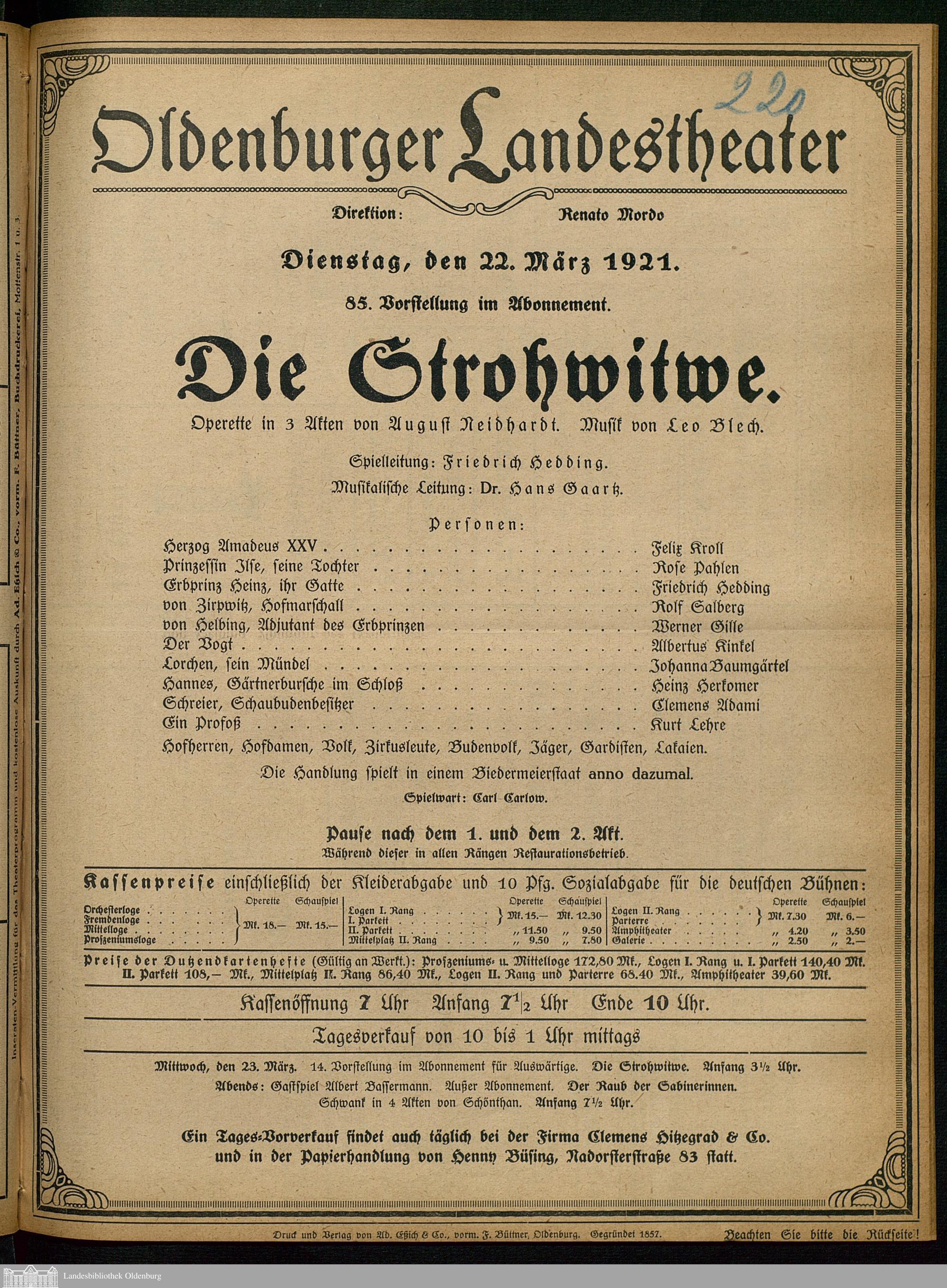 22.03.1921 - August Neidhardt: Die Strohwitwe.
