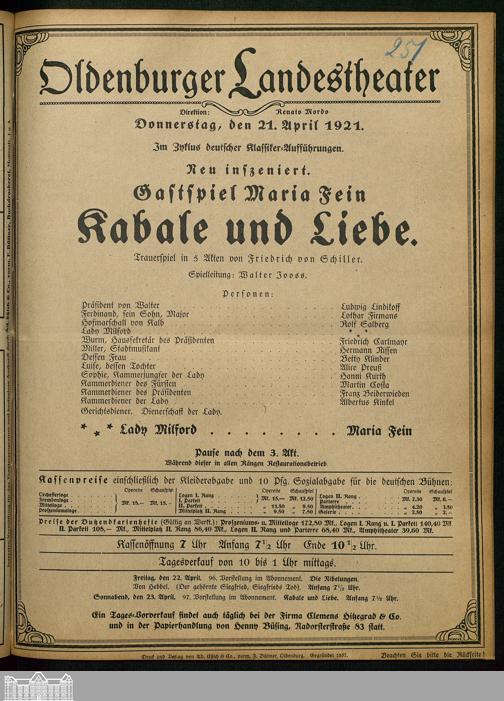 21.04.1921 - Friedrich von Schiller: Kabale und Liebe.
