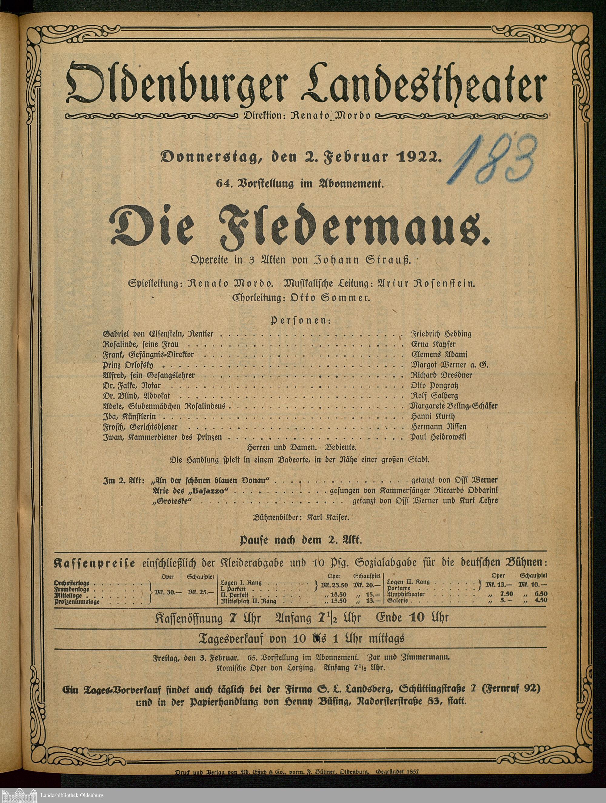 02.02.1922 - Johann Strauß: Die Fledermaus.