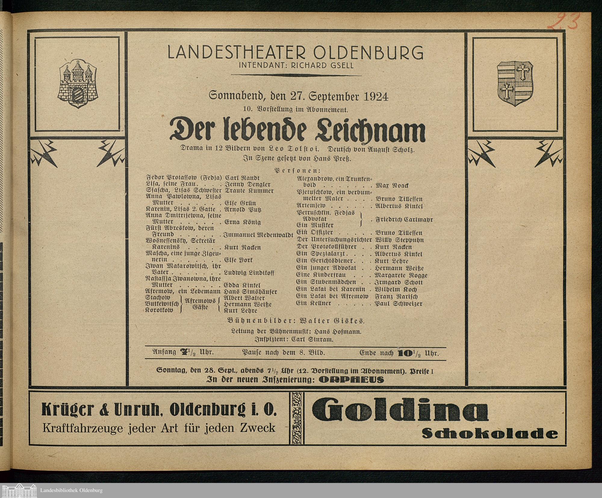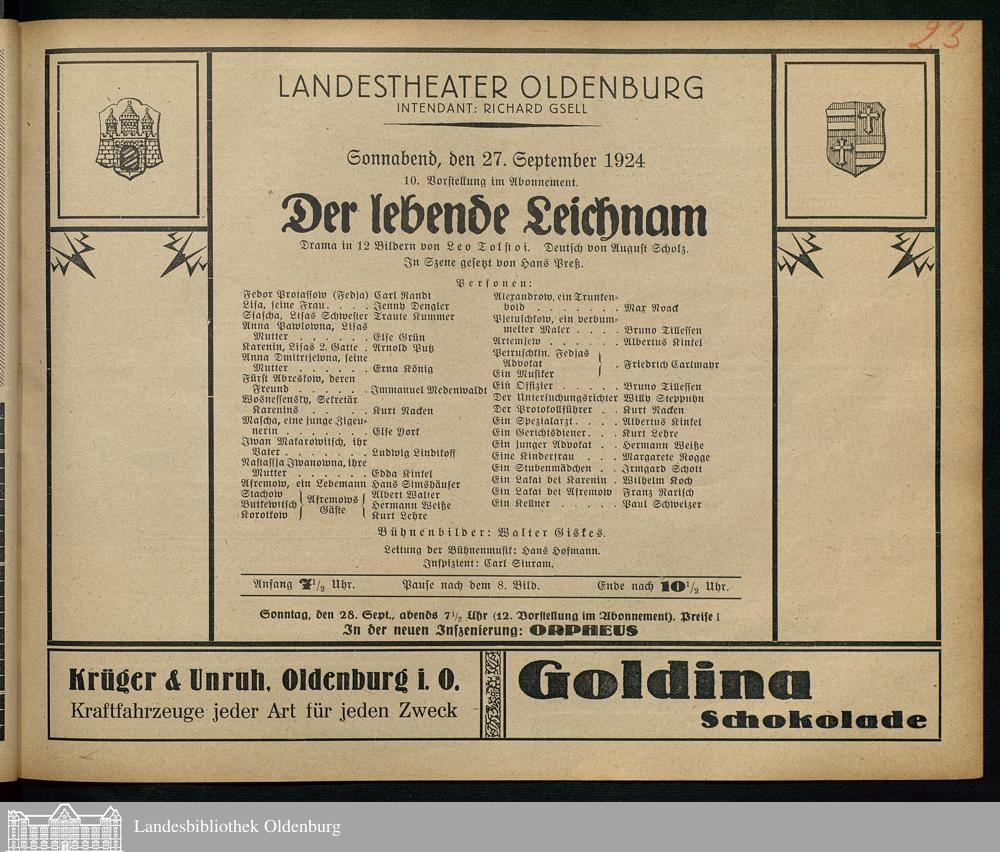 27.09.1924 - Leo Tolstoi [Lev Nikolaevič Tolstoj] / August Scholz (Bearb.): Der lebende...