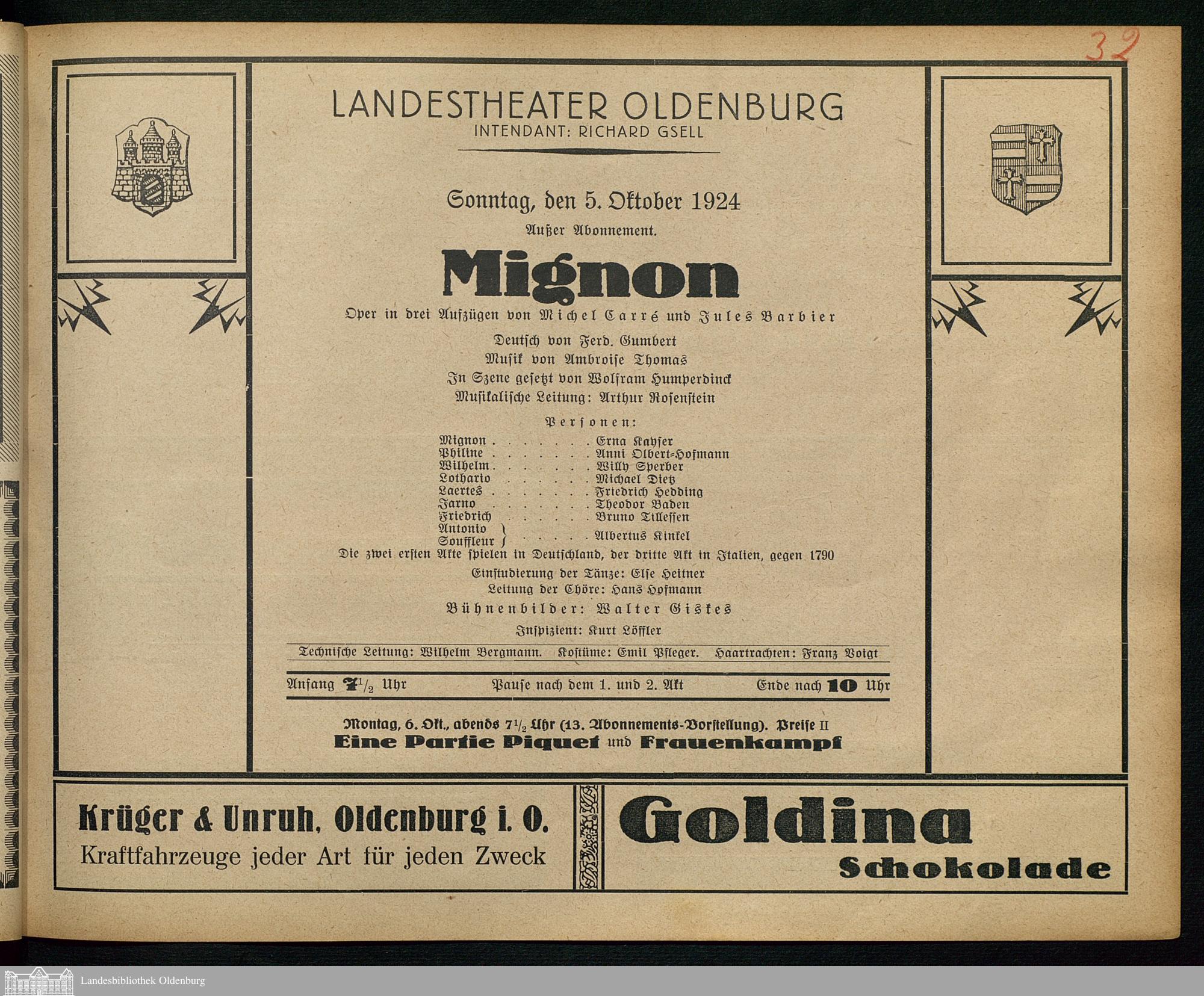 05.10.1924 - Michel Carré und Jules Barbier / Ferdinand Gumbert (Bearb.): Mignon...
