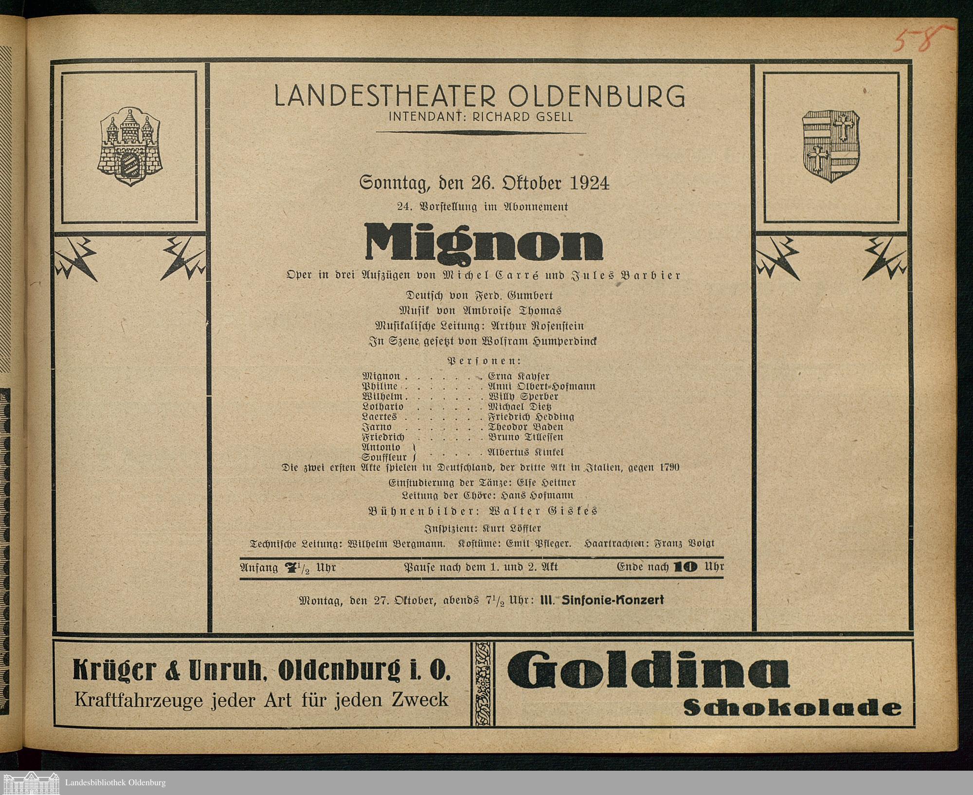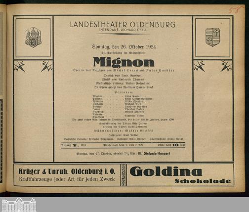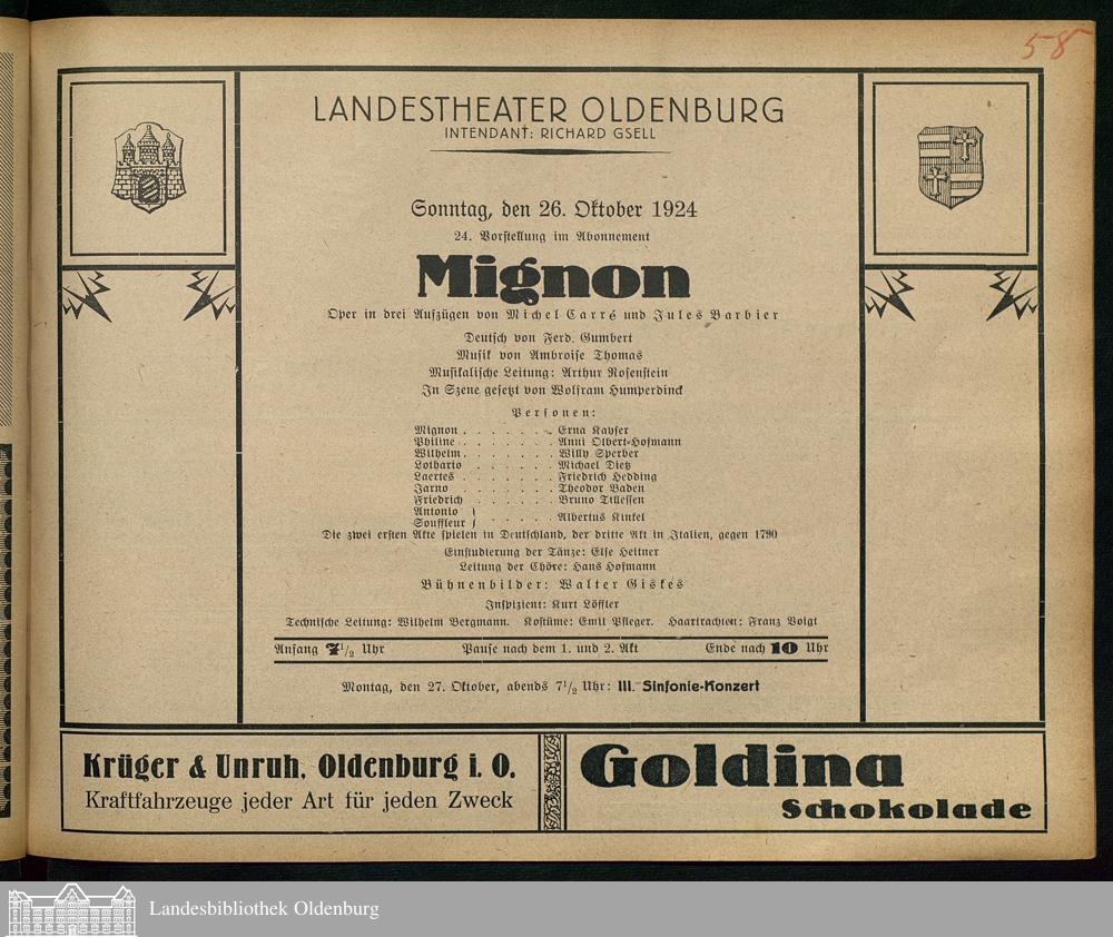 26.10.1924 - Michel Carré und Jules Barbier: Mignon.