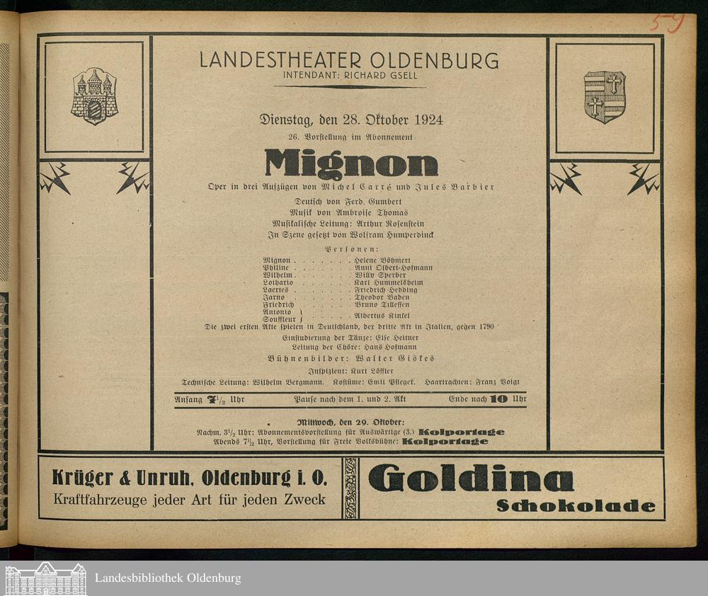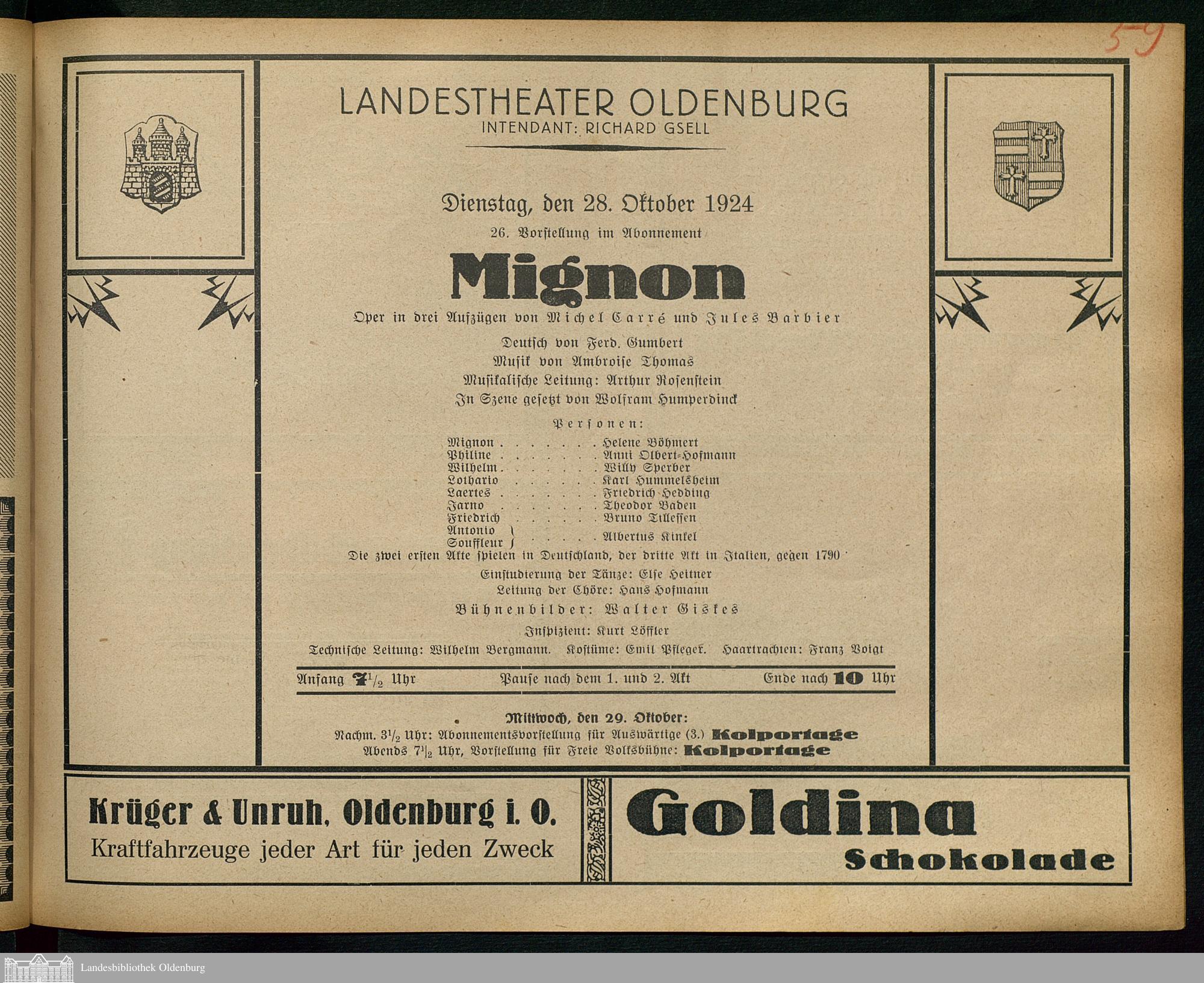 28.10.1924 - Michel Carré und Jules Barbier: Mignon.