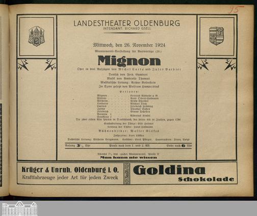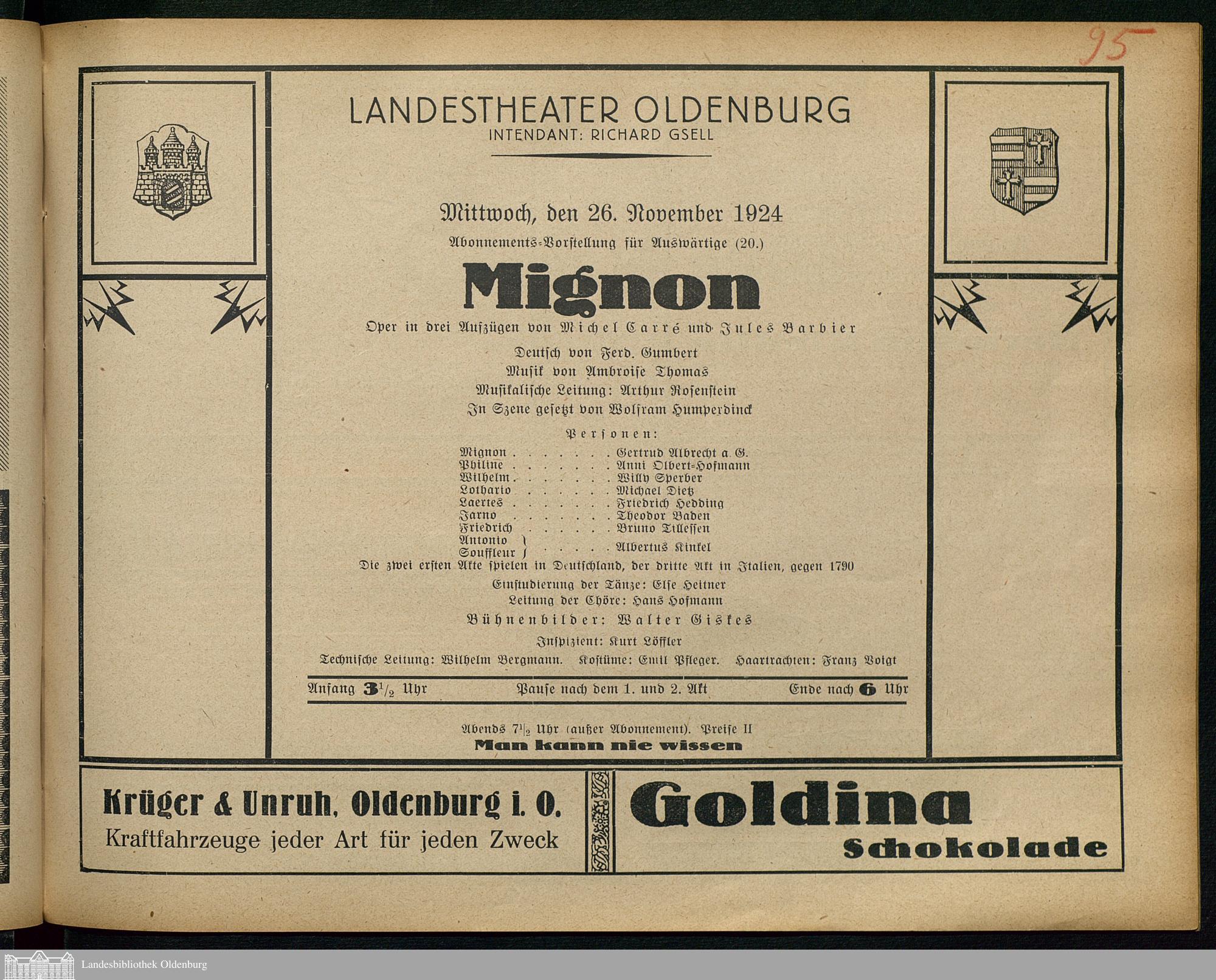 26.11.1924 - Michel Carré und Jules Barbier: Mignon.