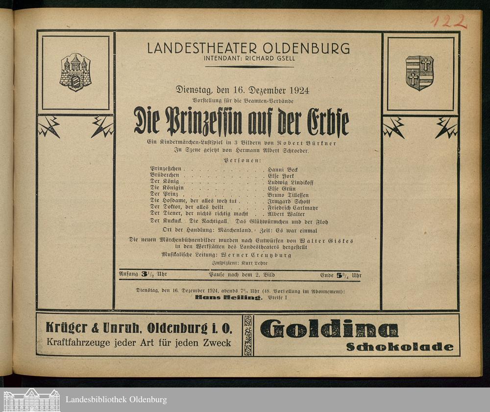 16.12.1924 - Robert Bürkner: Die Prinzessin auf der Erbse.