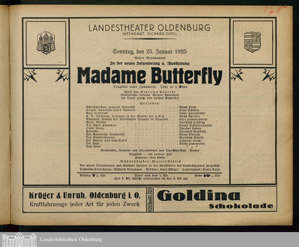 25.01.1925 - Giuseppe Giacosa und Luigi Illica: Madame Butterfly.