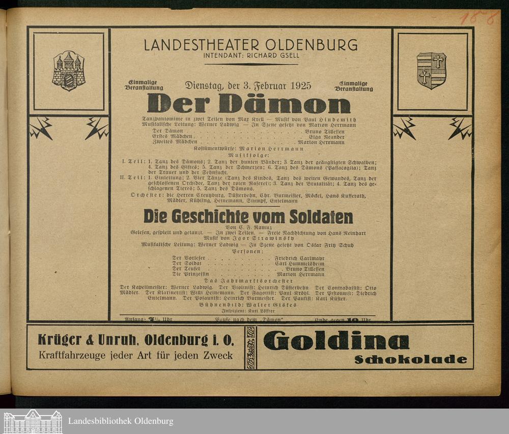 03.02.1925 - Max Krell: Der Dämon; Charles-Ferdinand Ramuz: Die Geschichte vom S...