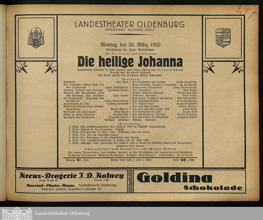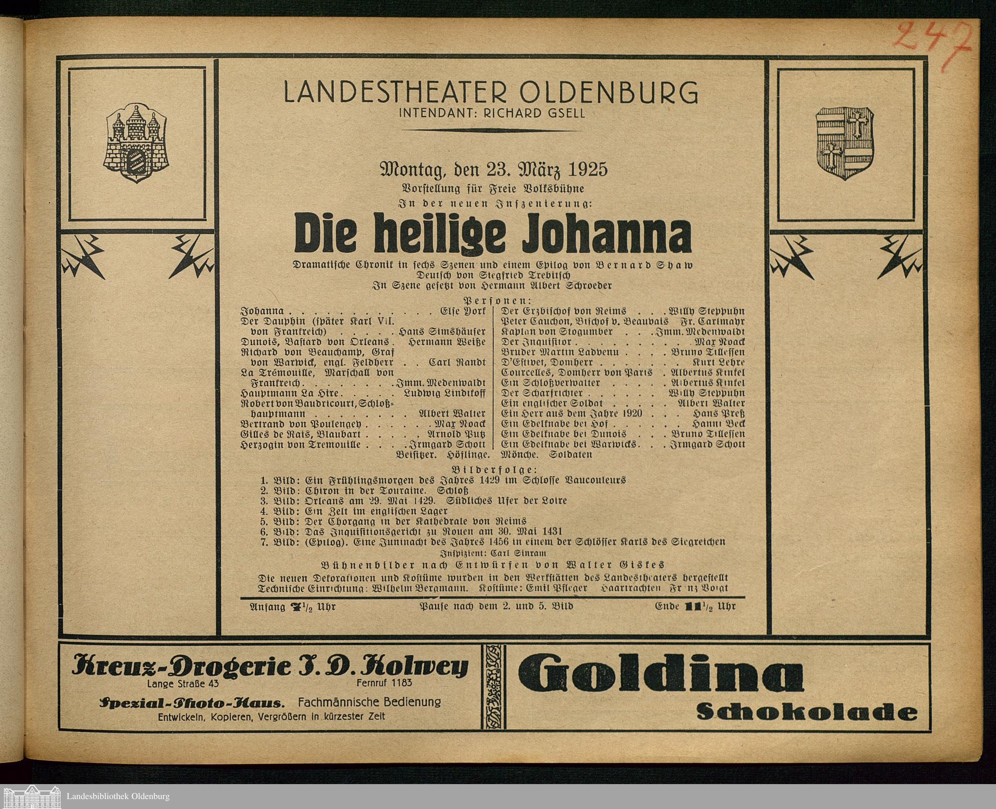 23.03.1925 - Bernard Shaw / Siegfried Trebitsch (Bearb.): Die heilige Johanna.
