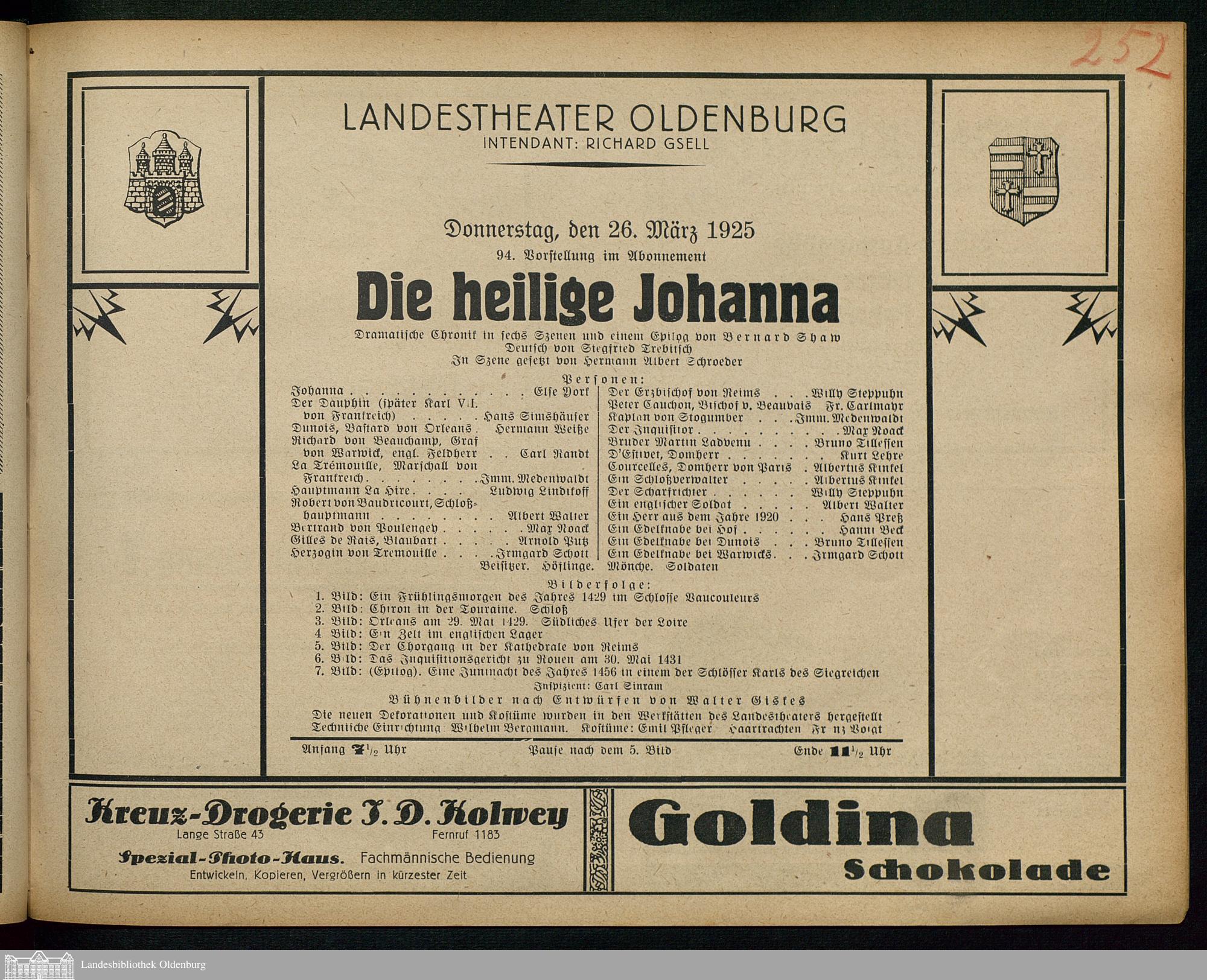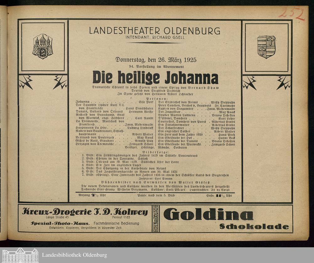 26.03.1925 - Bernard Shaw / Siegfried Trebitsch (Bearb.): Die heilige Johanna.