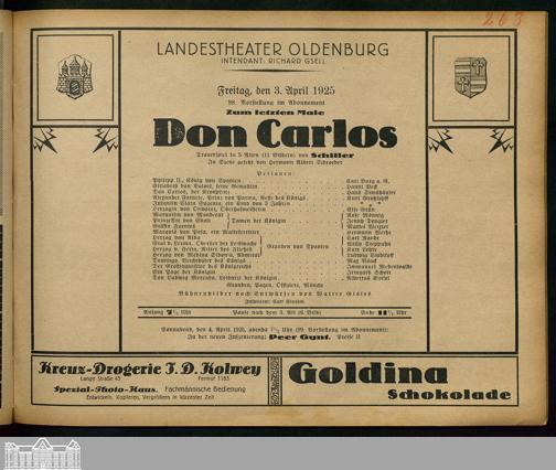 03.04.1925 - Friedrich von Schiller: Don Carlos.