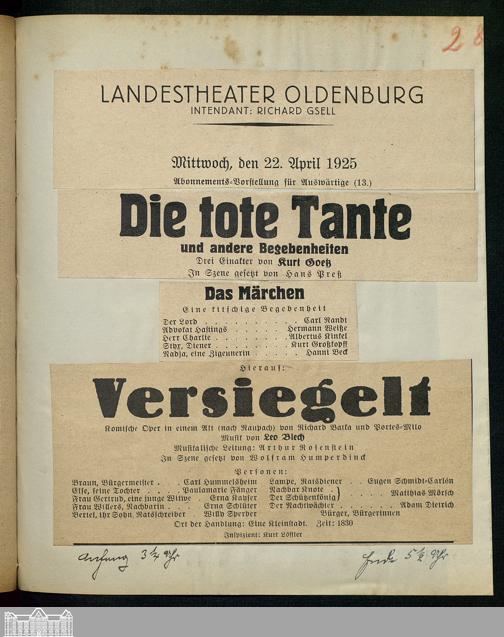 22.04.1925 - Kurt Goetz: Die tote Tante und andere Begebenheiten; Ernst Benjamin...