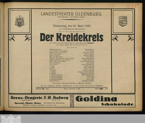 30.04.1925 - Klabund [Alfred Henschke]: Der Kreidekreis.