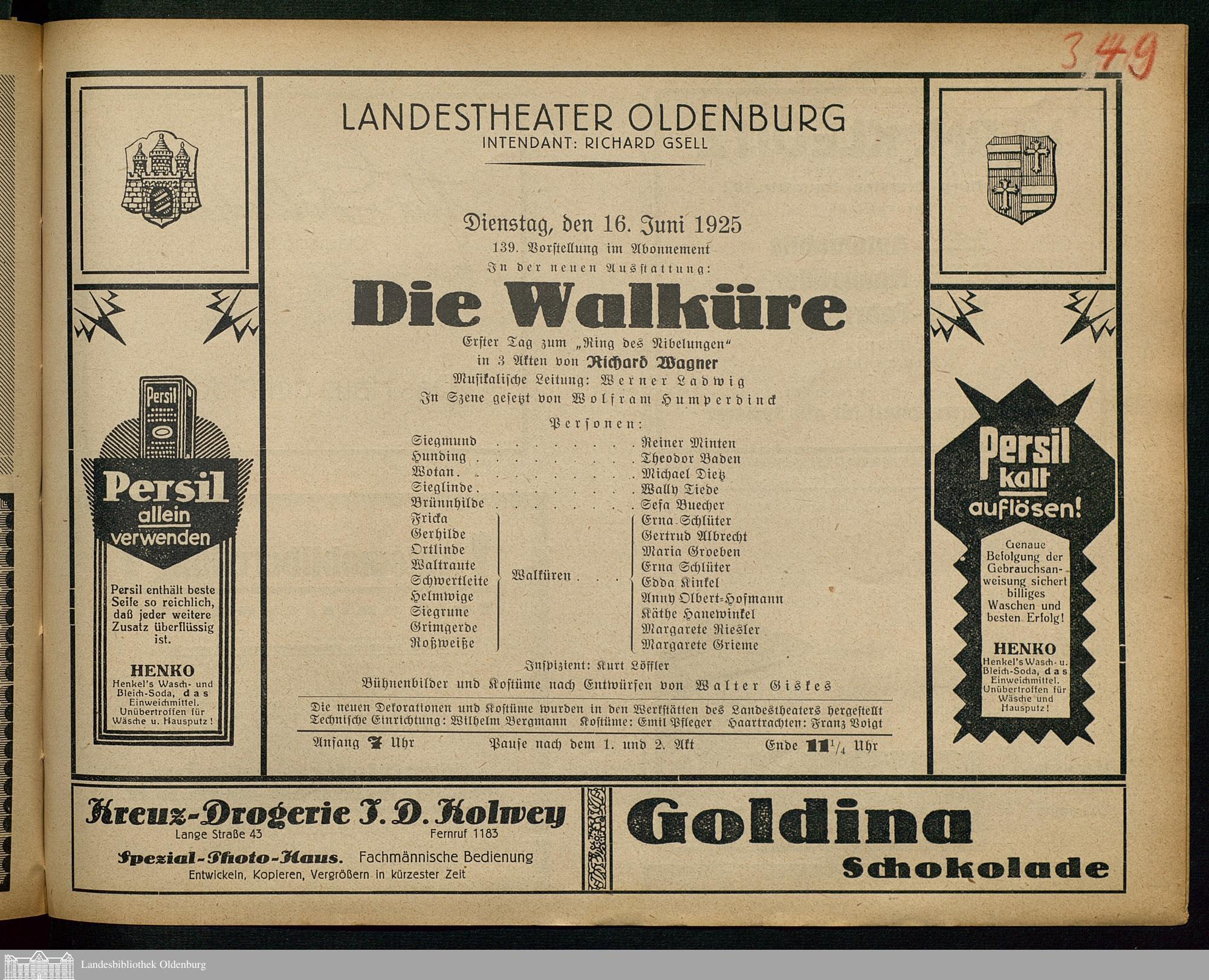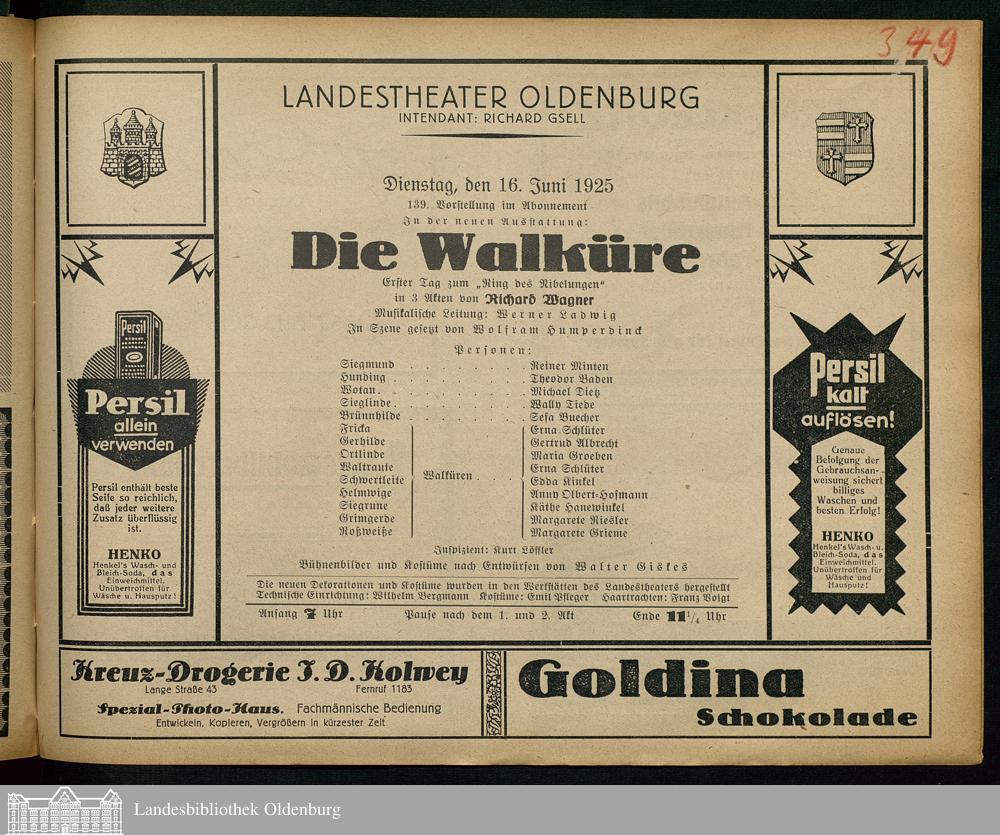 16.06.1925 - Richard Wagner: Die Walküre.