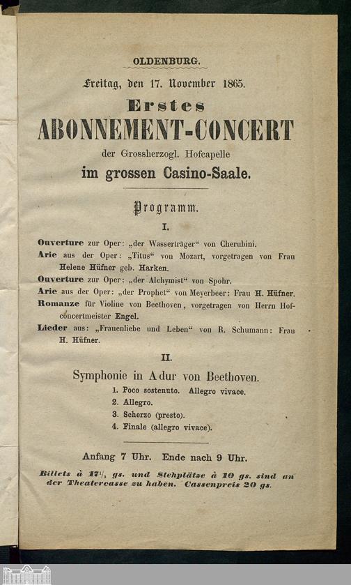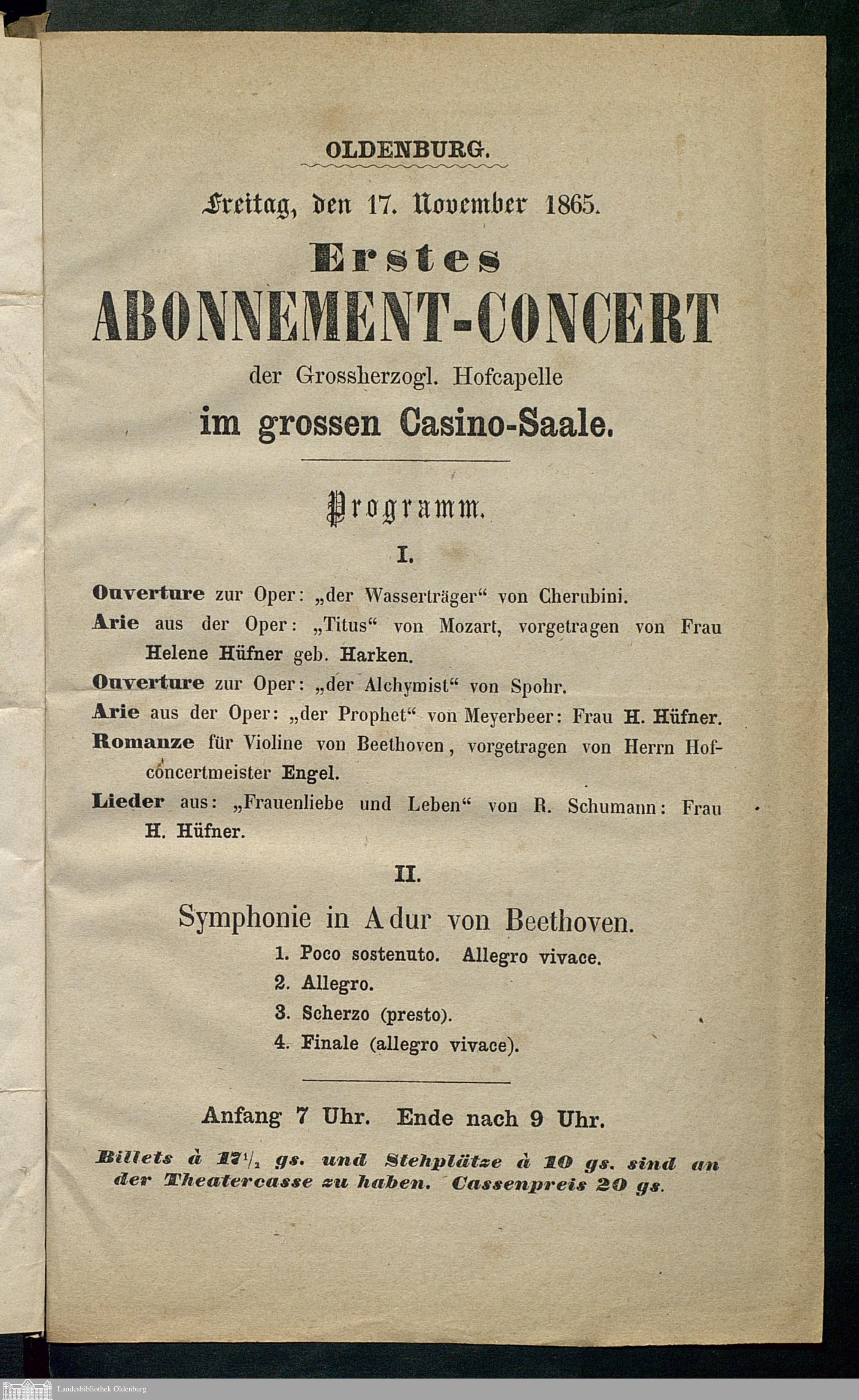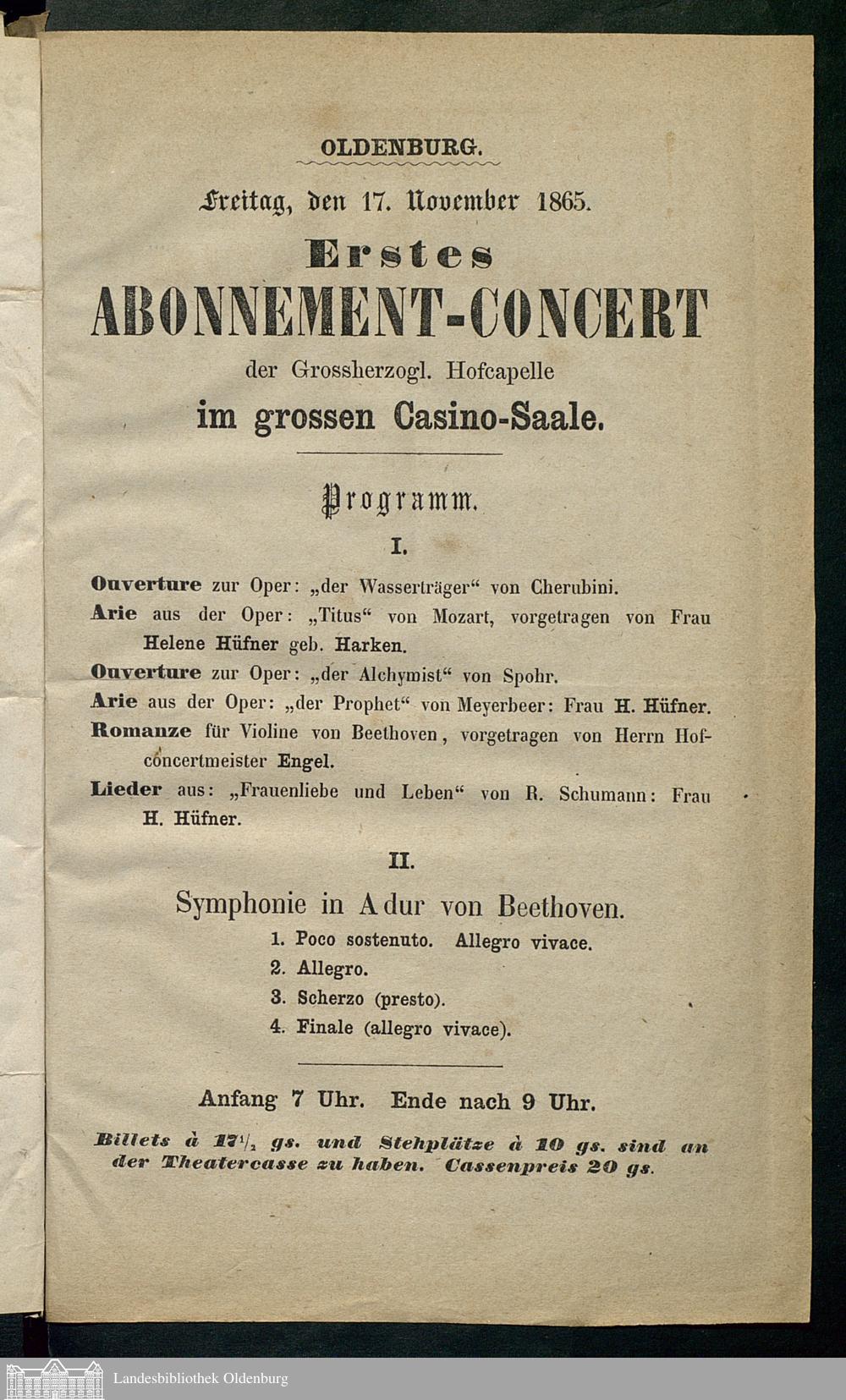 17.11.1865 - Erstes Abonnement-Concert, der Grossherzogl. Hofcapelle, im grossen...
