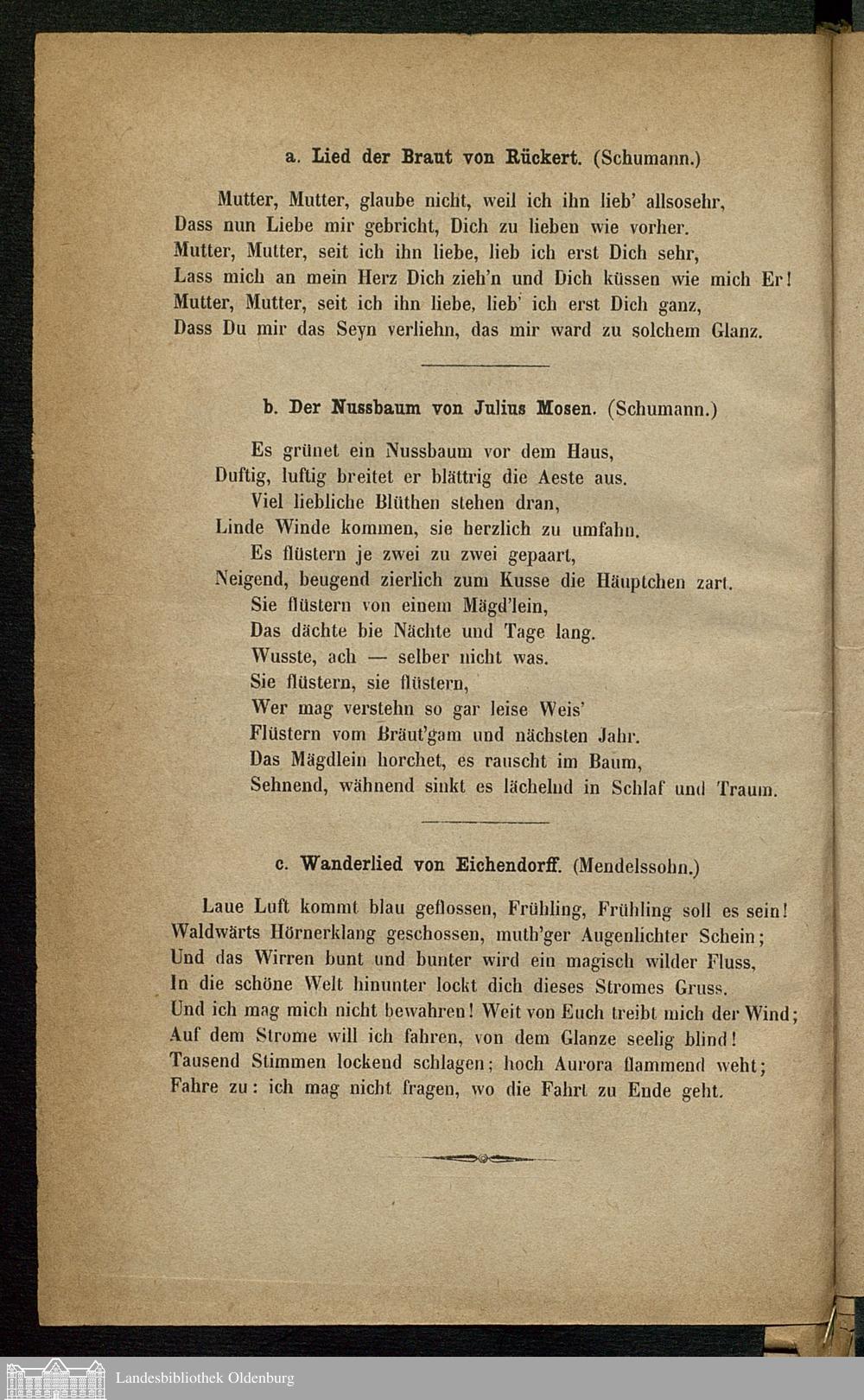 [Konzert-Programme des Oldenburger Hoftheaters und ähnlicher Oldenburger Veranst...