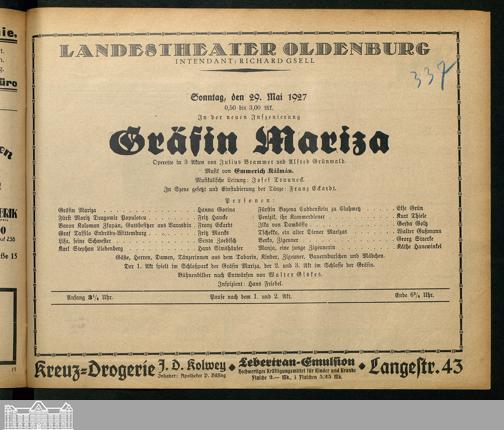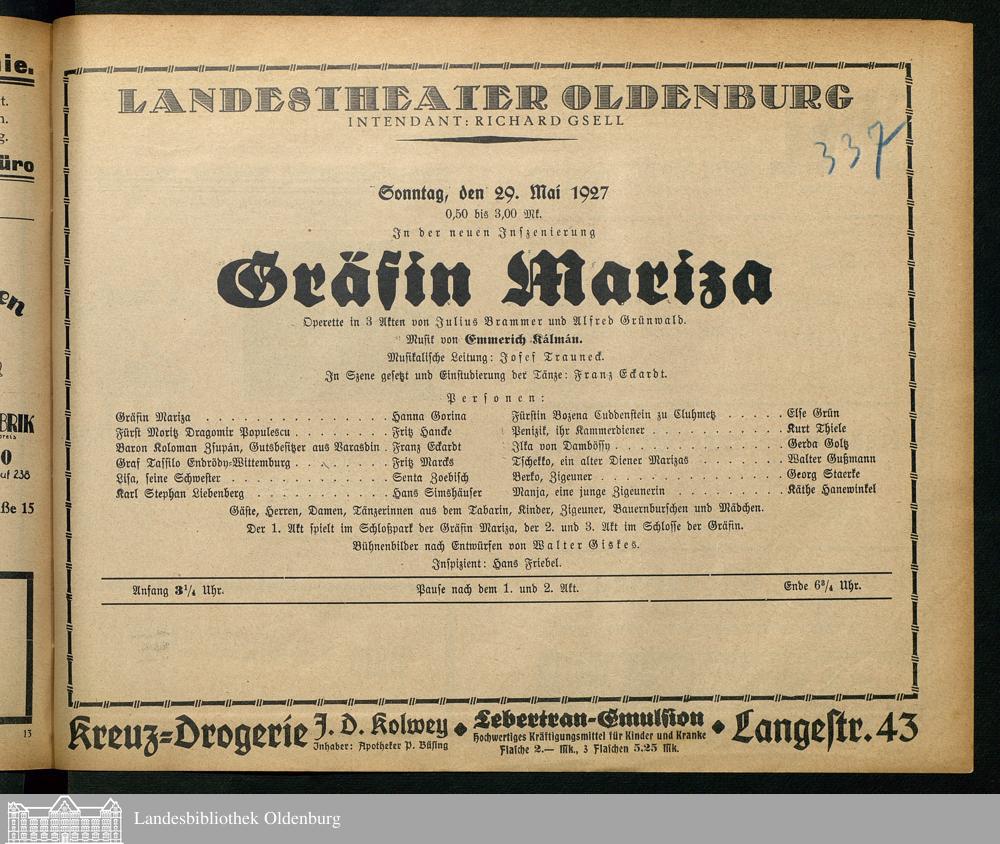 29.05.1927 - Julius Brammer und Alfred Grünwald: Gräfin Mariza.