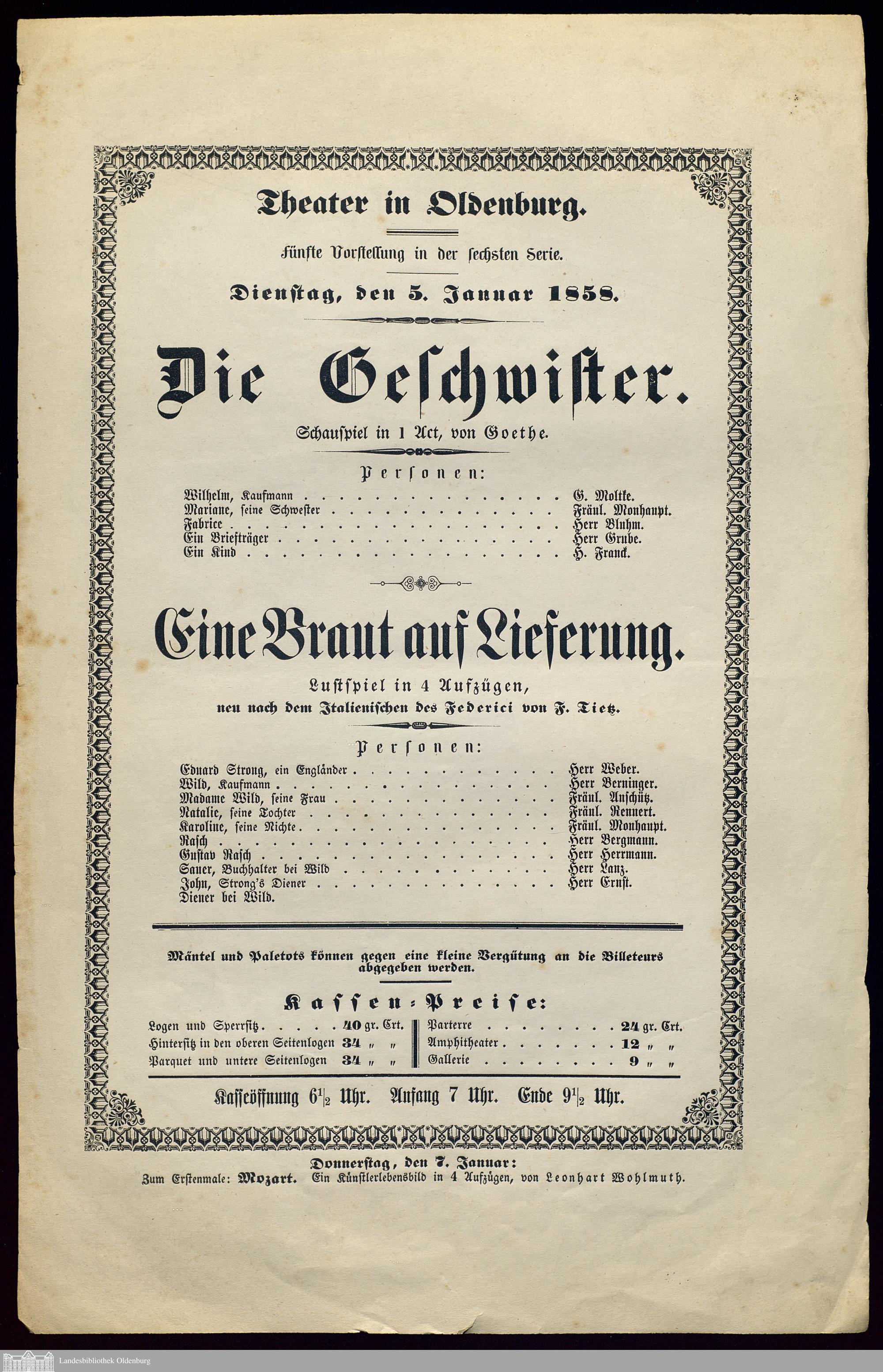 05.01.1858 - Johann Wolfgang von Goethe: Die Geschwister; Camillo Federici / Friedrich...