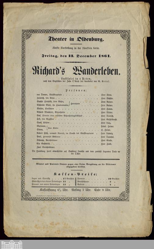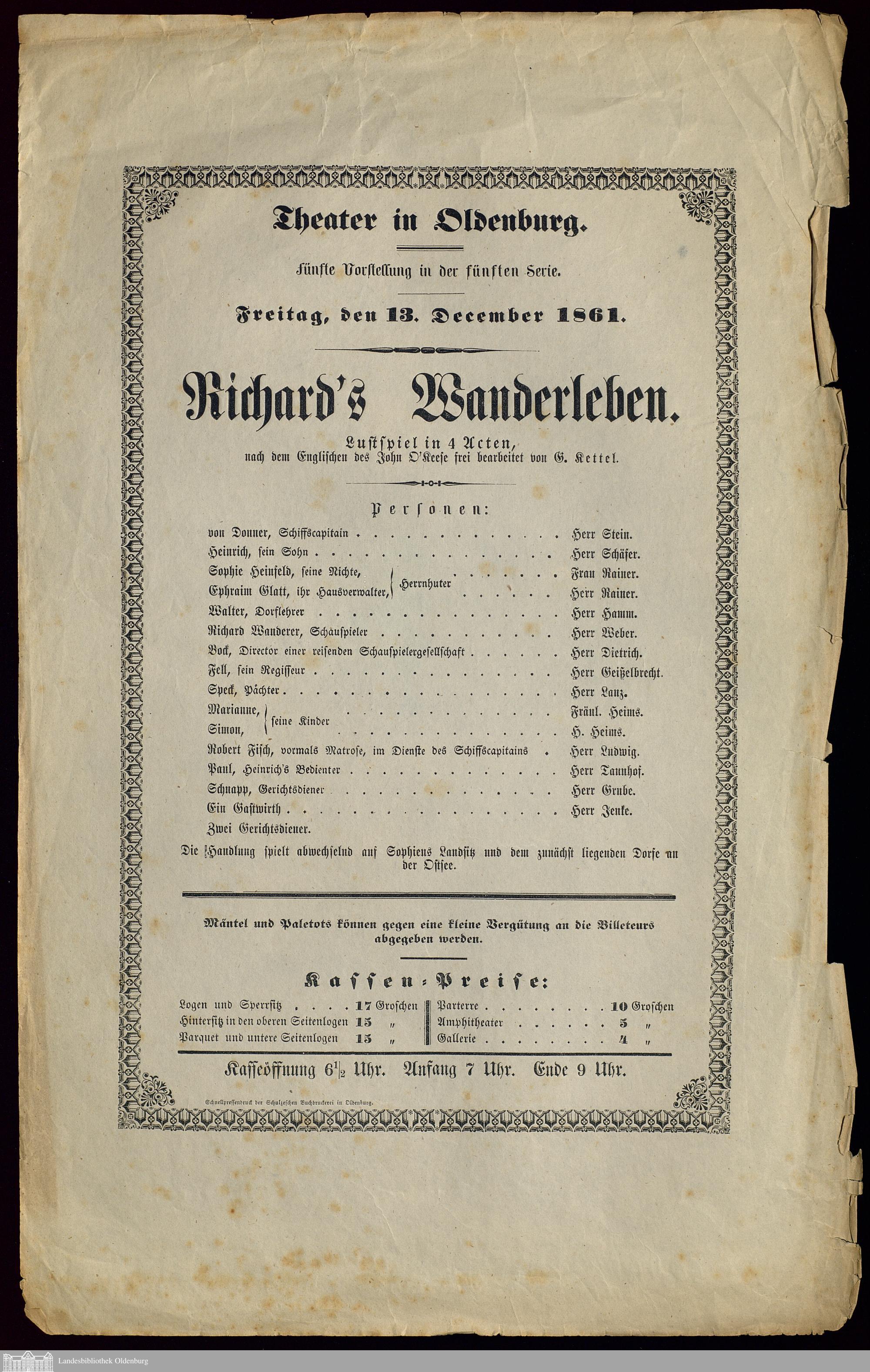 13.12.1861 - John O'Keefe / Georg Kettel (Bearb.): Richard's Wanderleben.