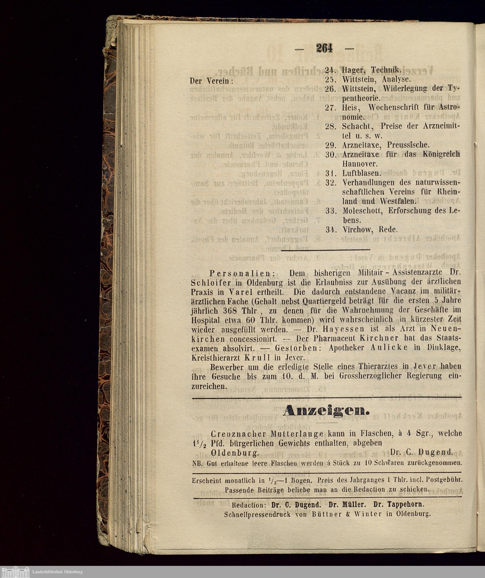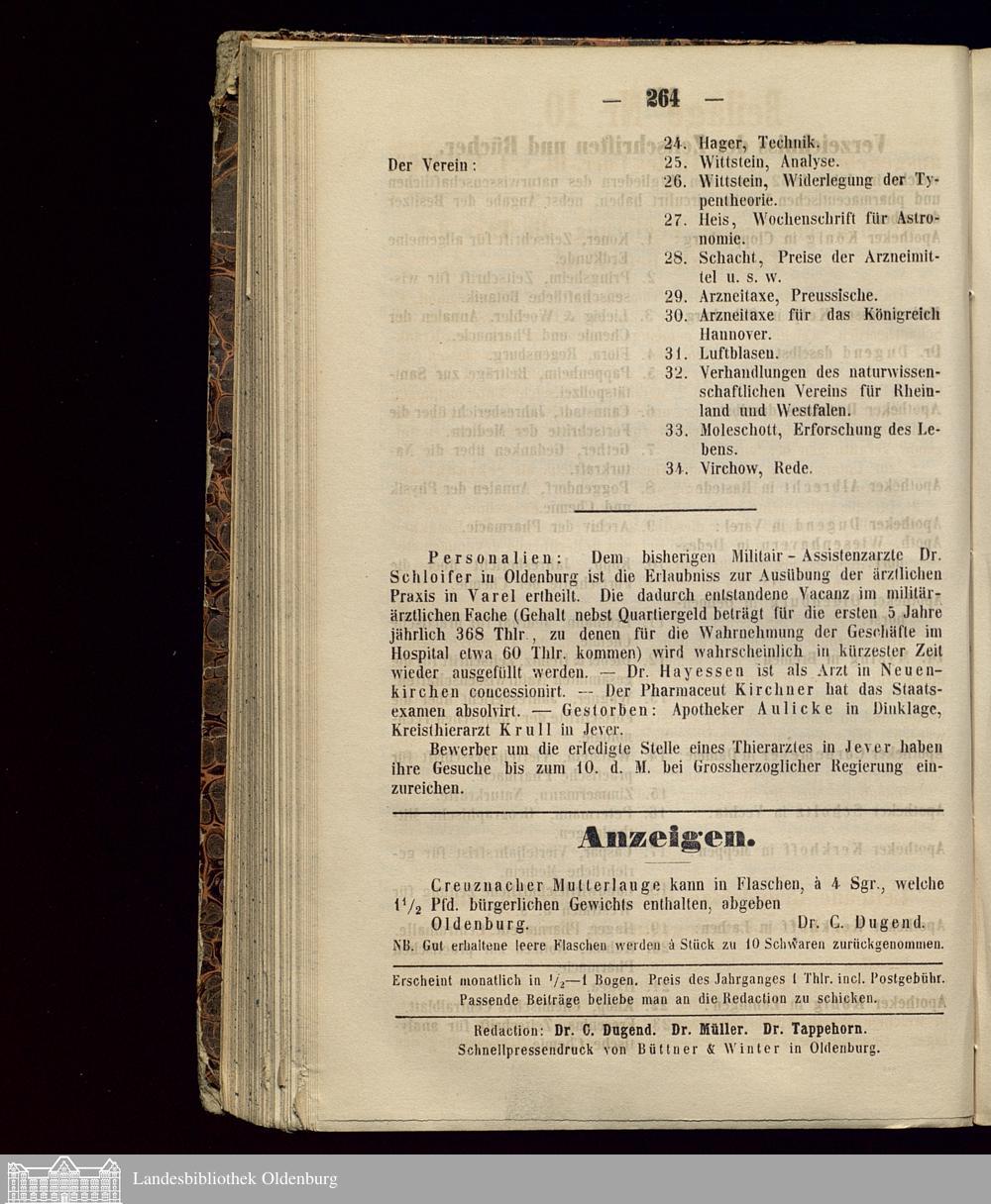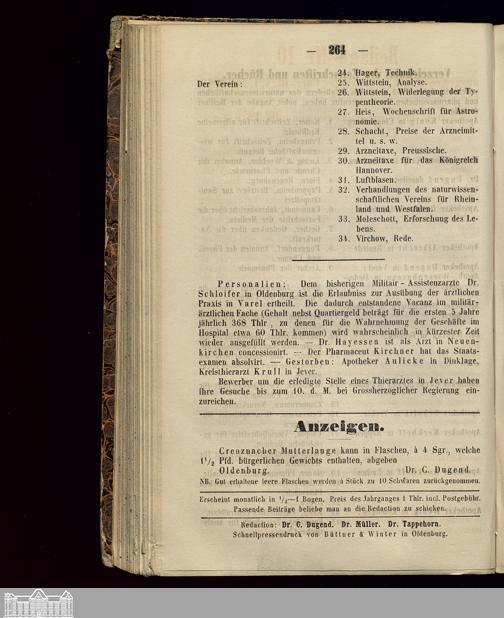 Correspondenzblatt für die Ärzte und Apotheker des Großherzogthums Oldenburg