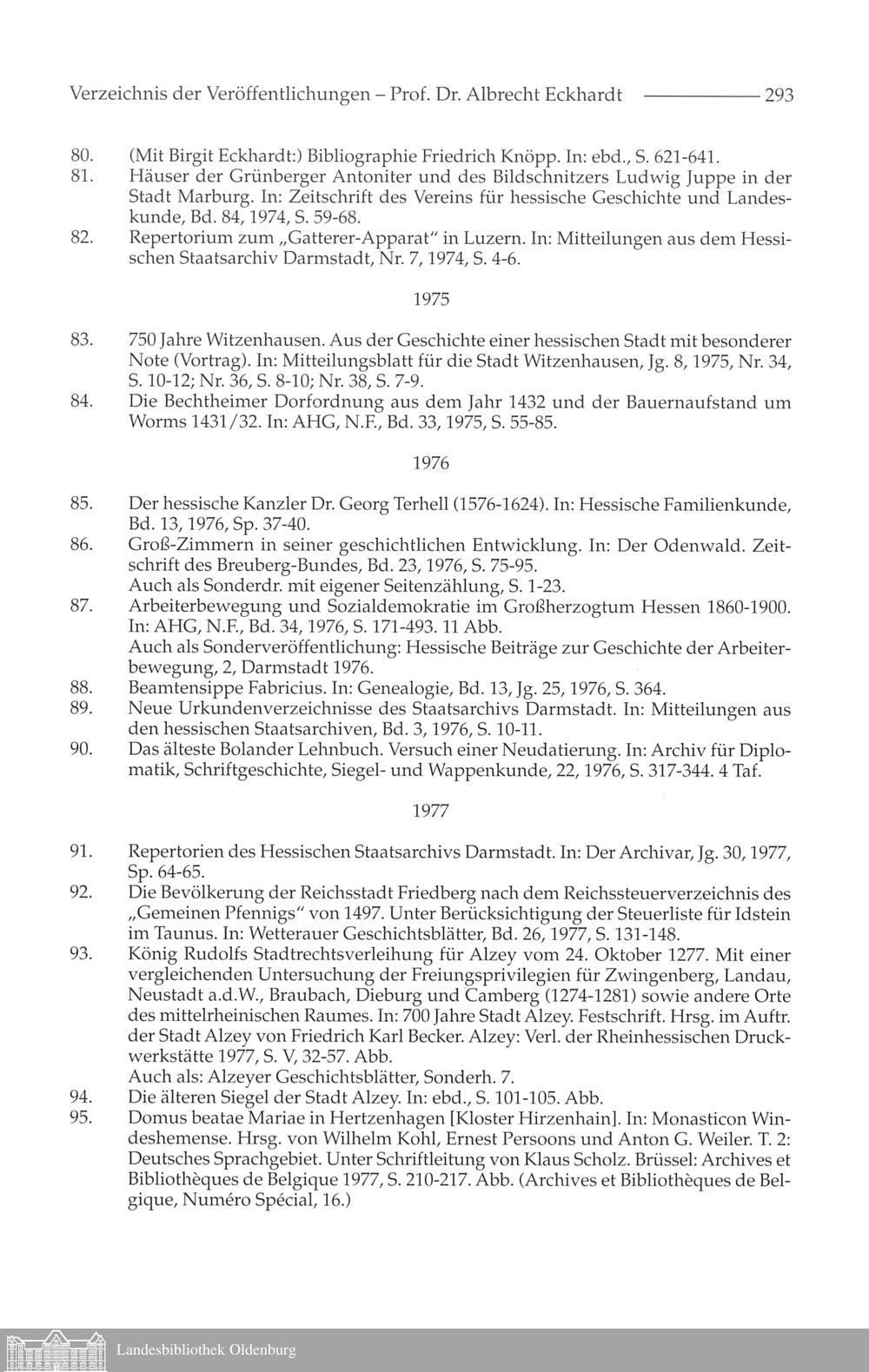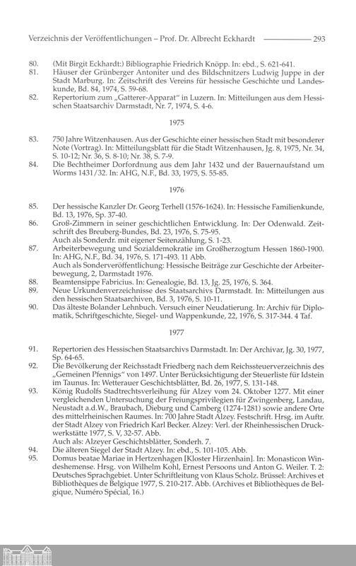 Albrecht Eckhardt: Verzeichnis der Veröffentlichungen zum 75. Geburtstag