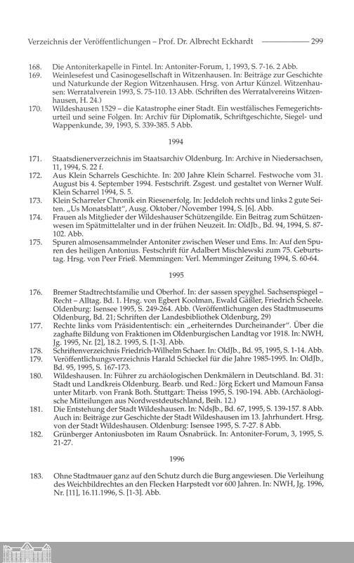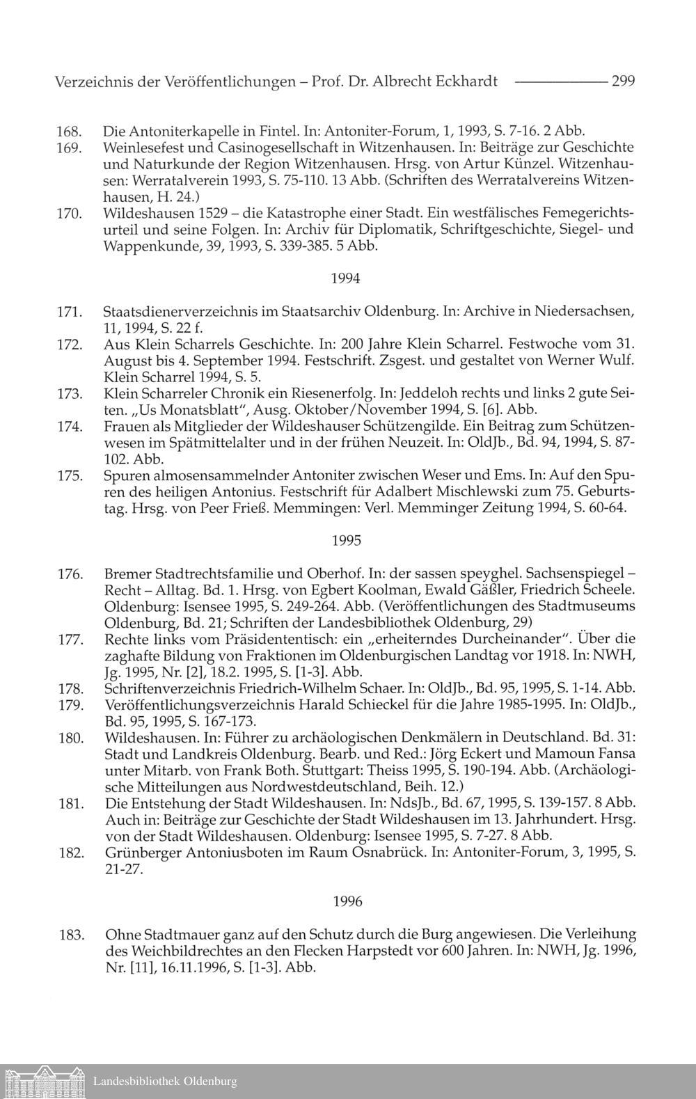 Albrecht Eckhardt: Verzeichnis der Veröffentlichungen zum 75. Geburtstag