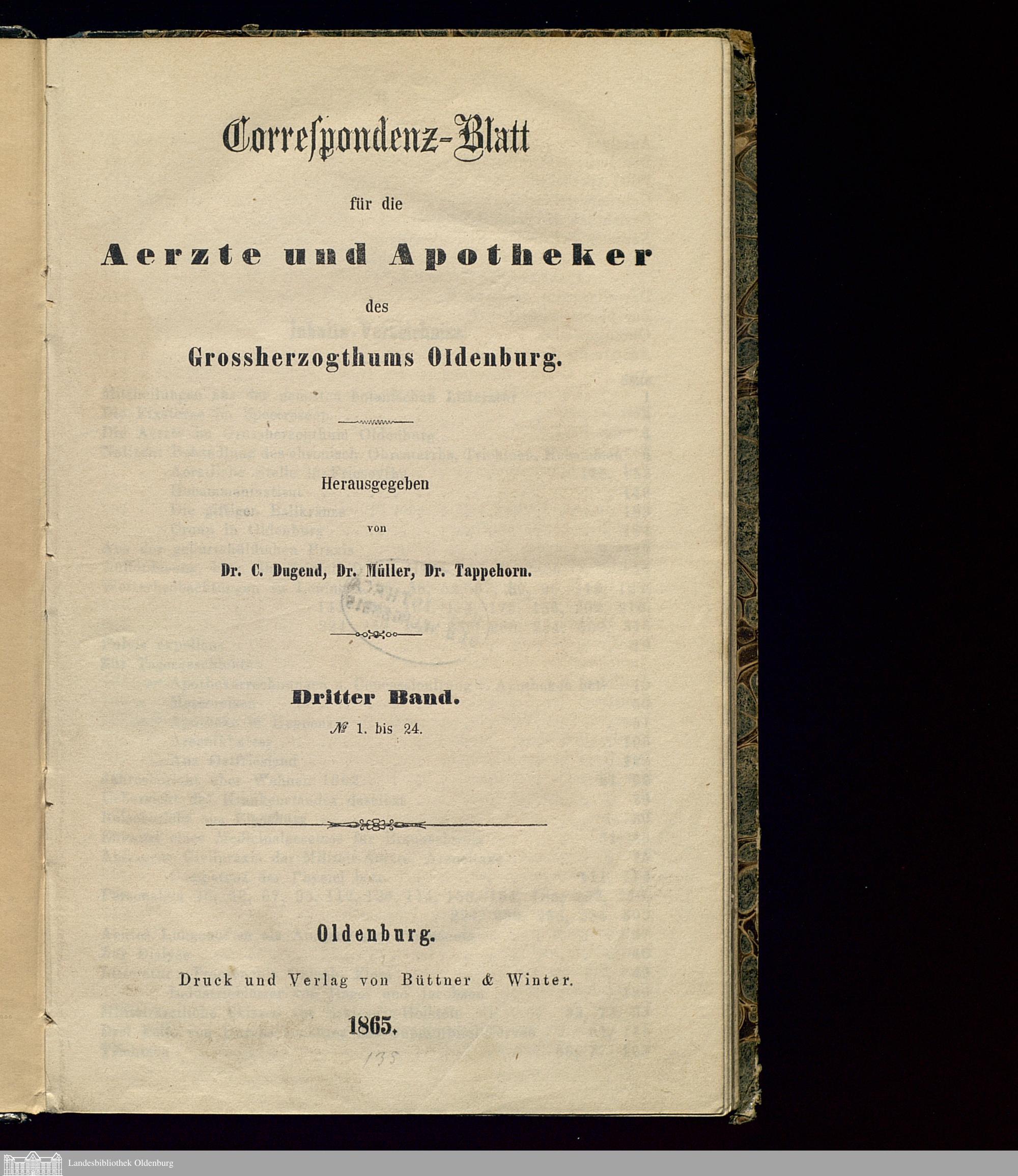 Correspondenzblatt für die Ärzte und Apotheker des Großherzogthums Oldenburg