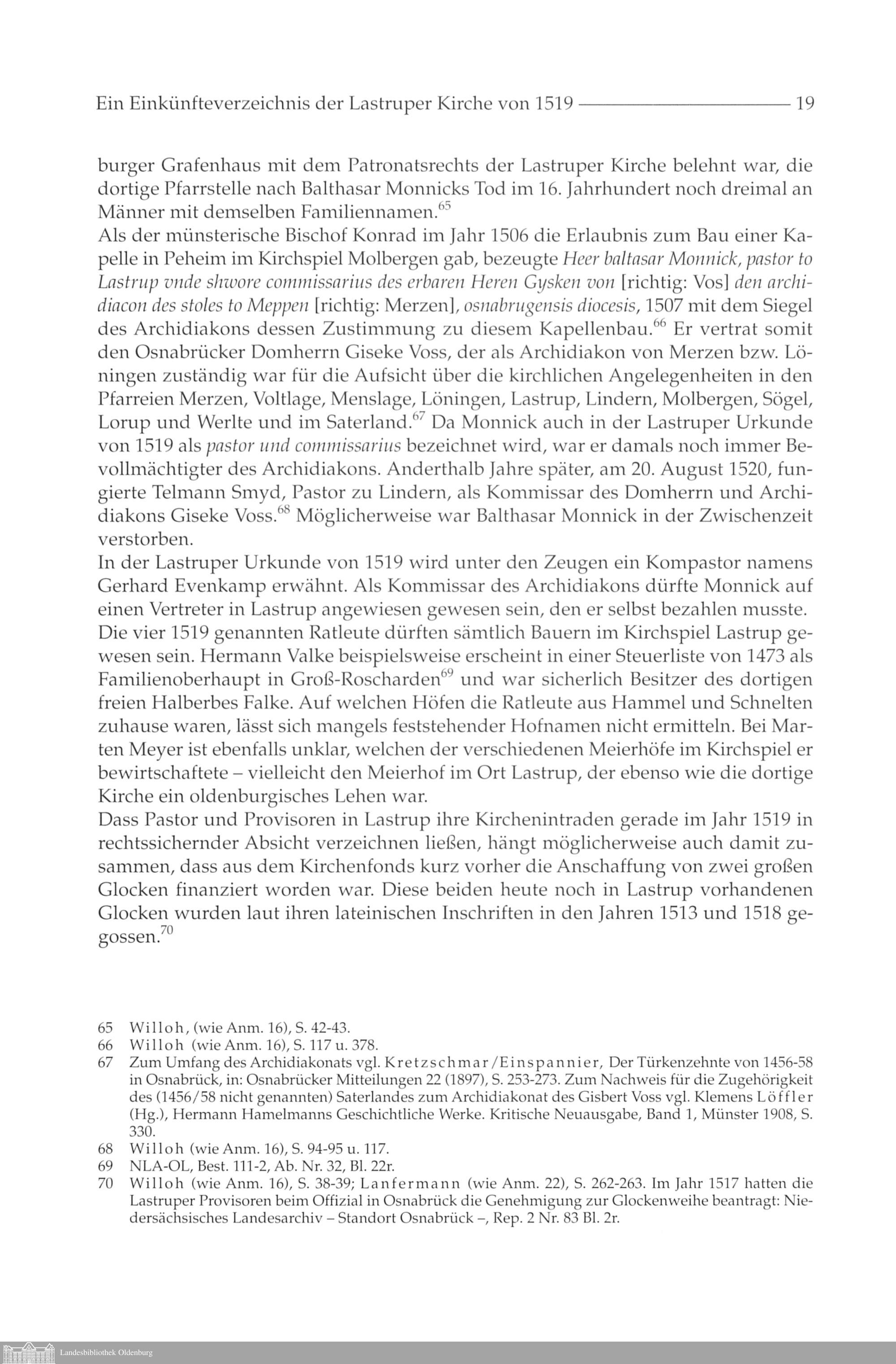 Peter Sieve: Ein Einkünfteverzeichnis der Lastruper Kirche von 1519
