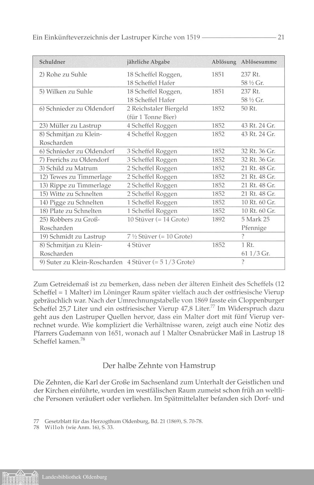 Peter Sieve: Ein Einkünfteverzeichnis der Lastruper Kirche von 1519