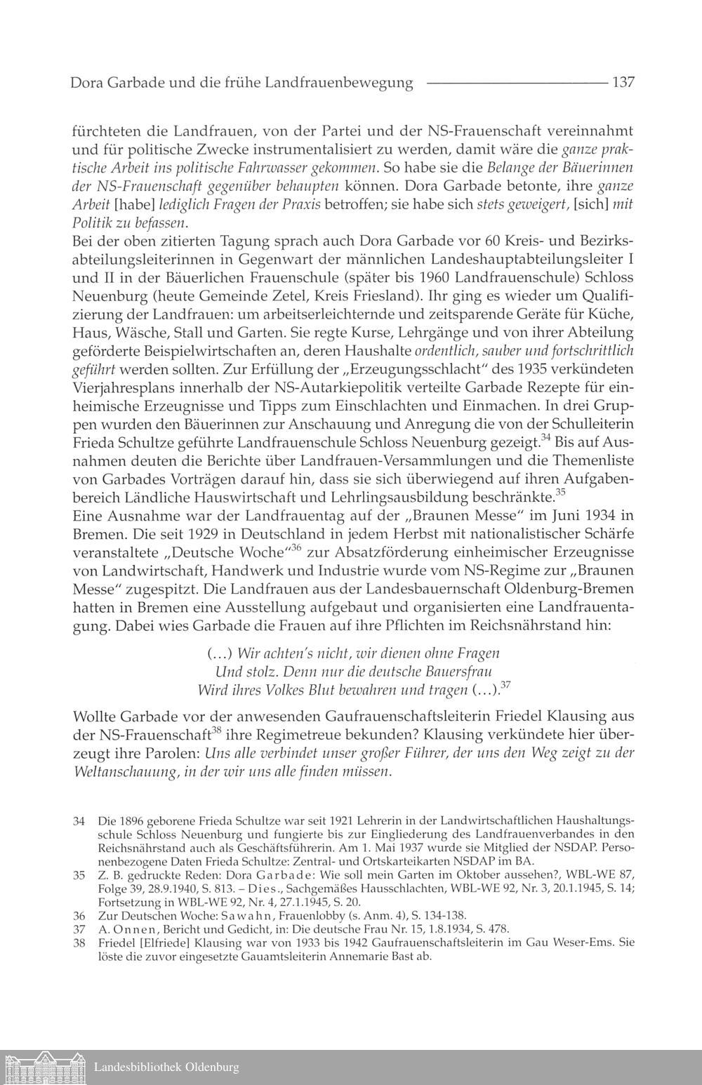 Anke Sawahn: Dora Garbade (1893-1981) und die frühe Landfrauenbewegung im Oldenburger...