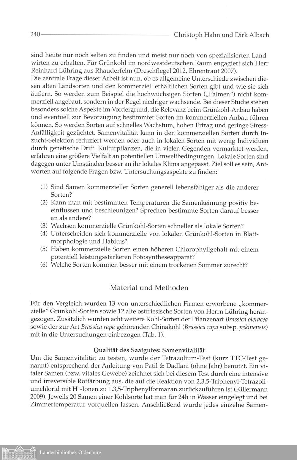 Christoph Hahn und Dirk Albach: Der Vergleich verschiedener Sorten des Grünkohls