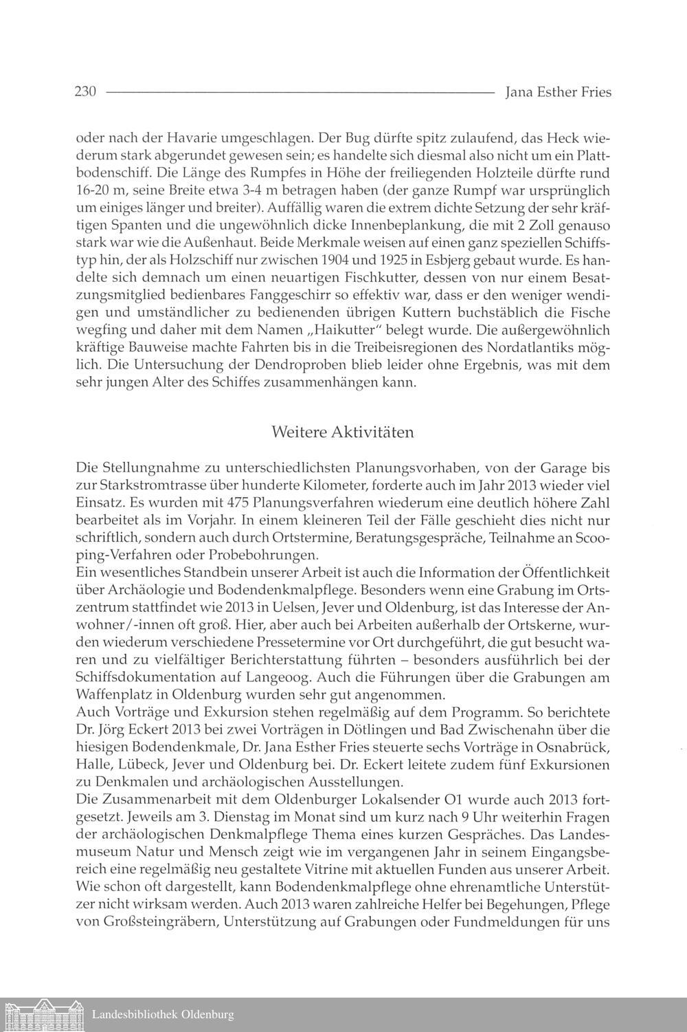 Jana Esther Fries: Bericht der archäologischen Denkmalpflege 2013