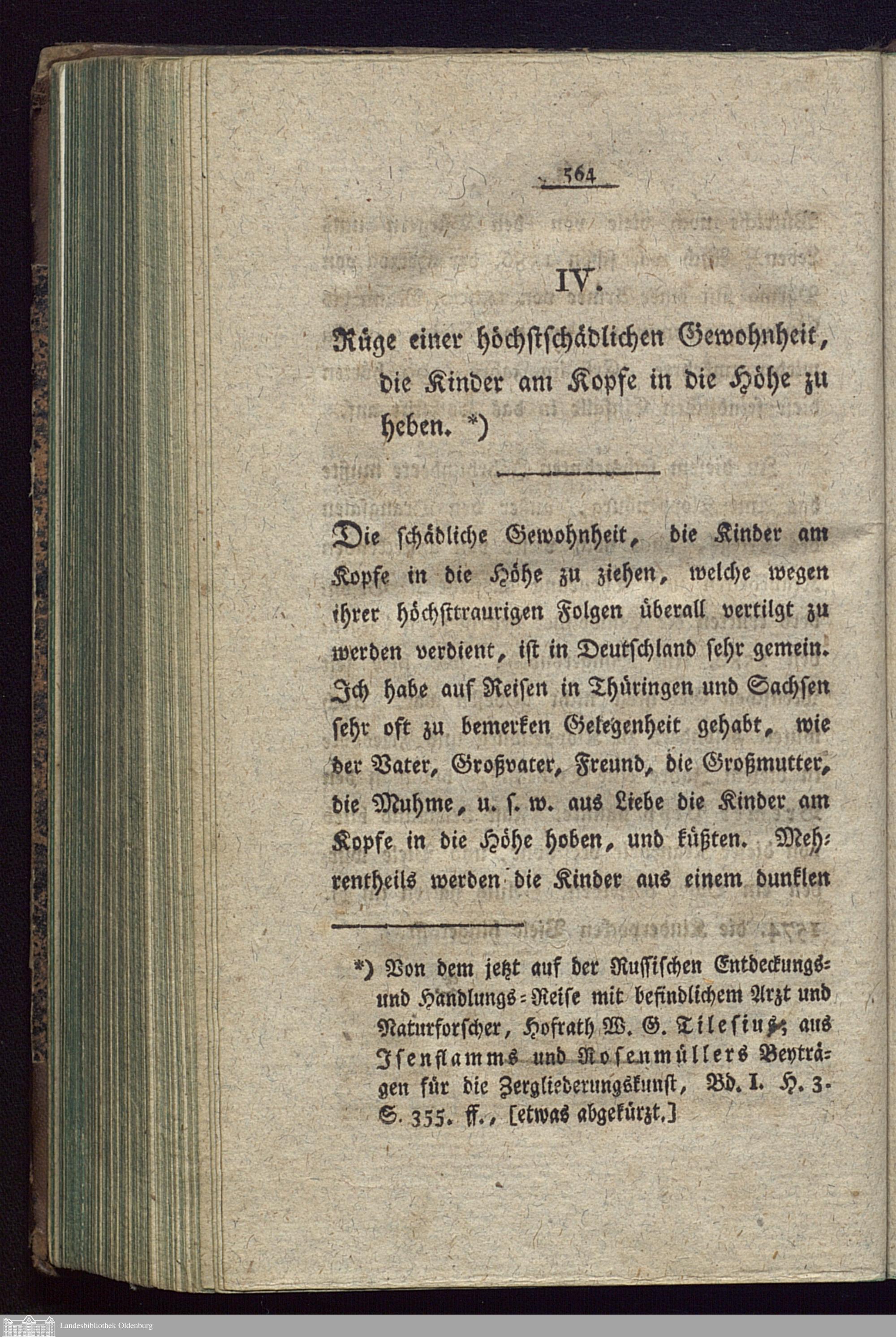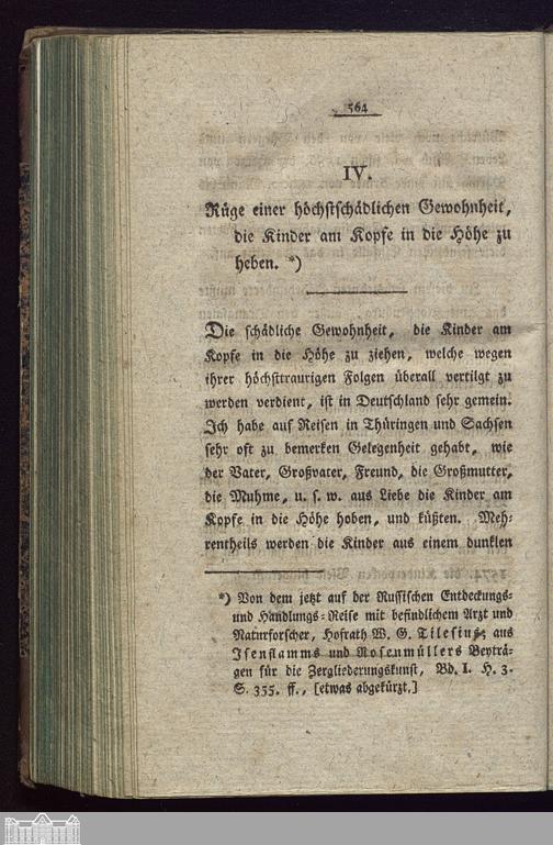 IV. Rüge einer höchstschädlichen Gewohnheit, die Kinder am Kopfe in die Höhe zu ...
