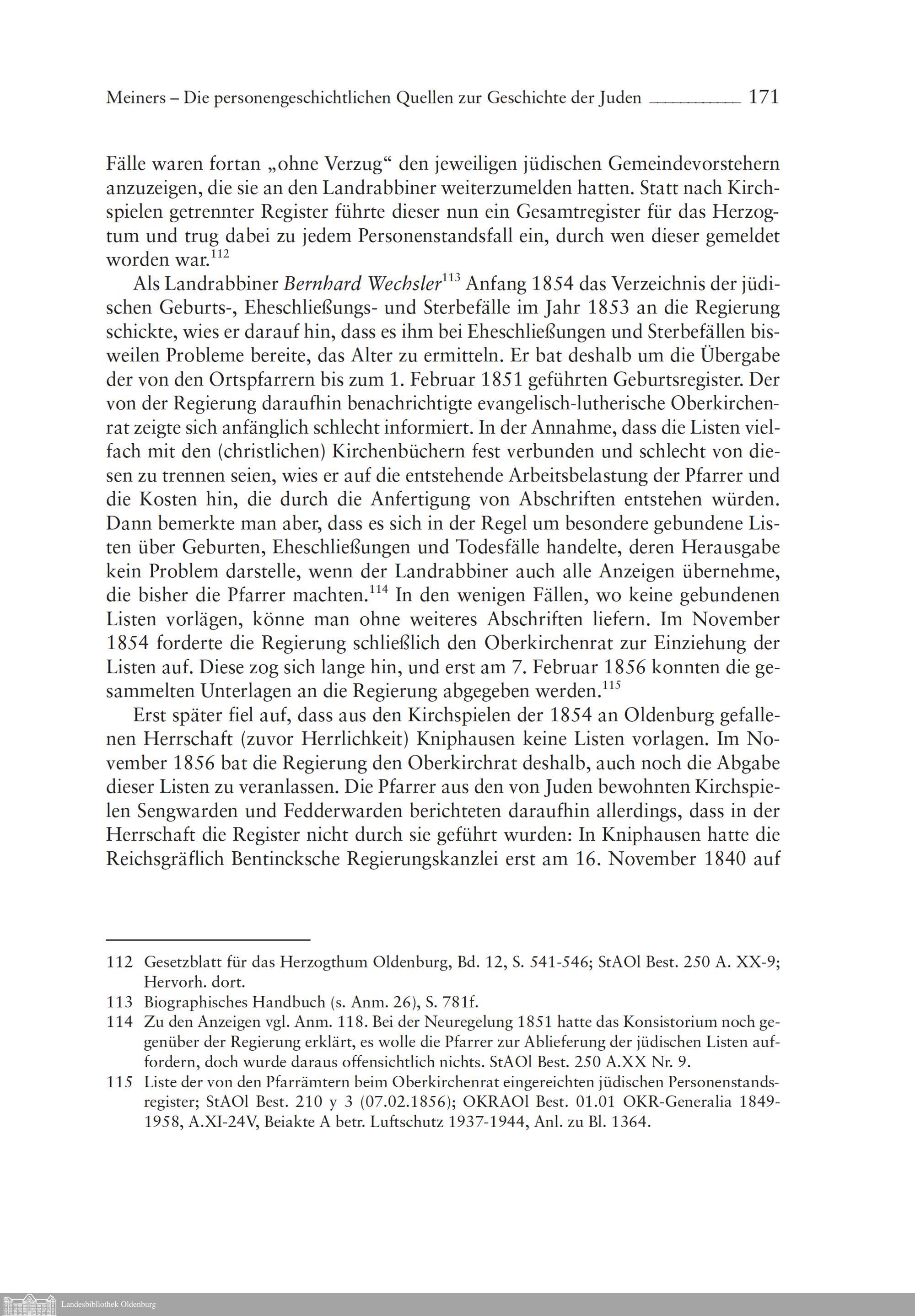 Die personengeschichtlichen Quellen zur Geschichte der Juden im Oldenburger Land...