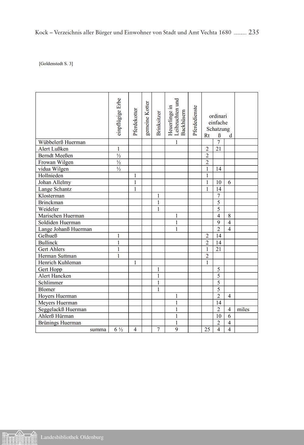 Verzeichnis aller Bürger und Einwohner von Stadt und Amt Vechta 1680. Von Ludger...